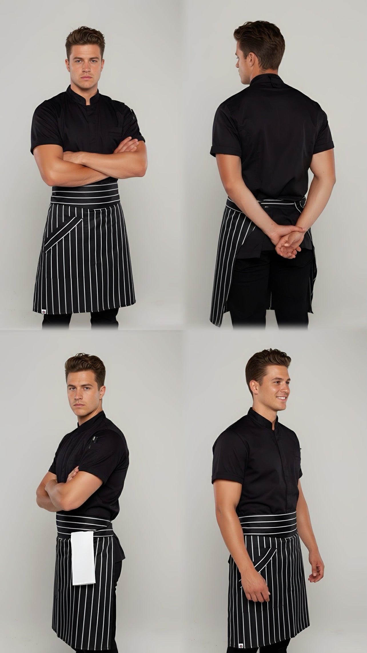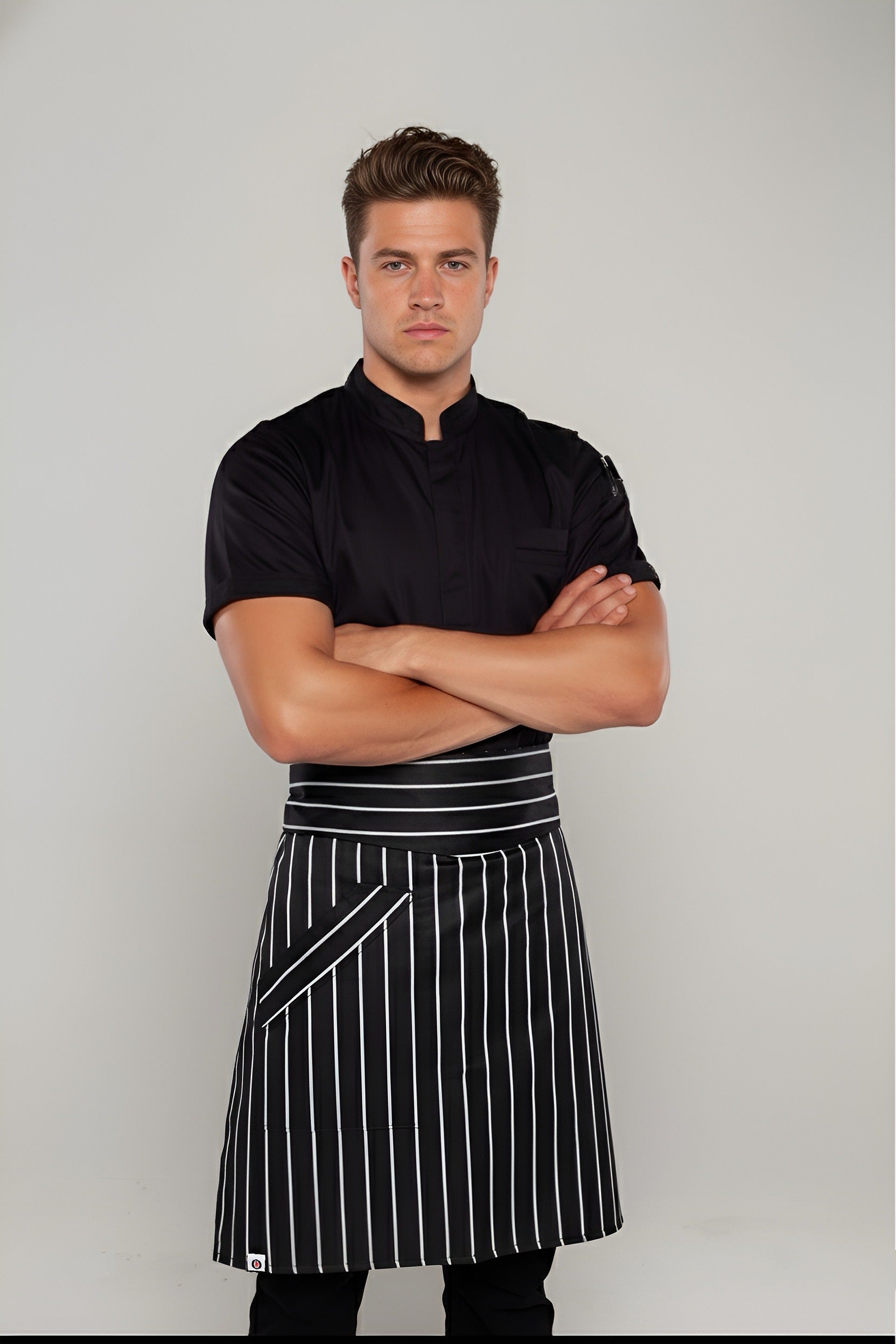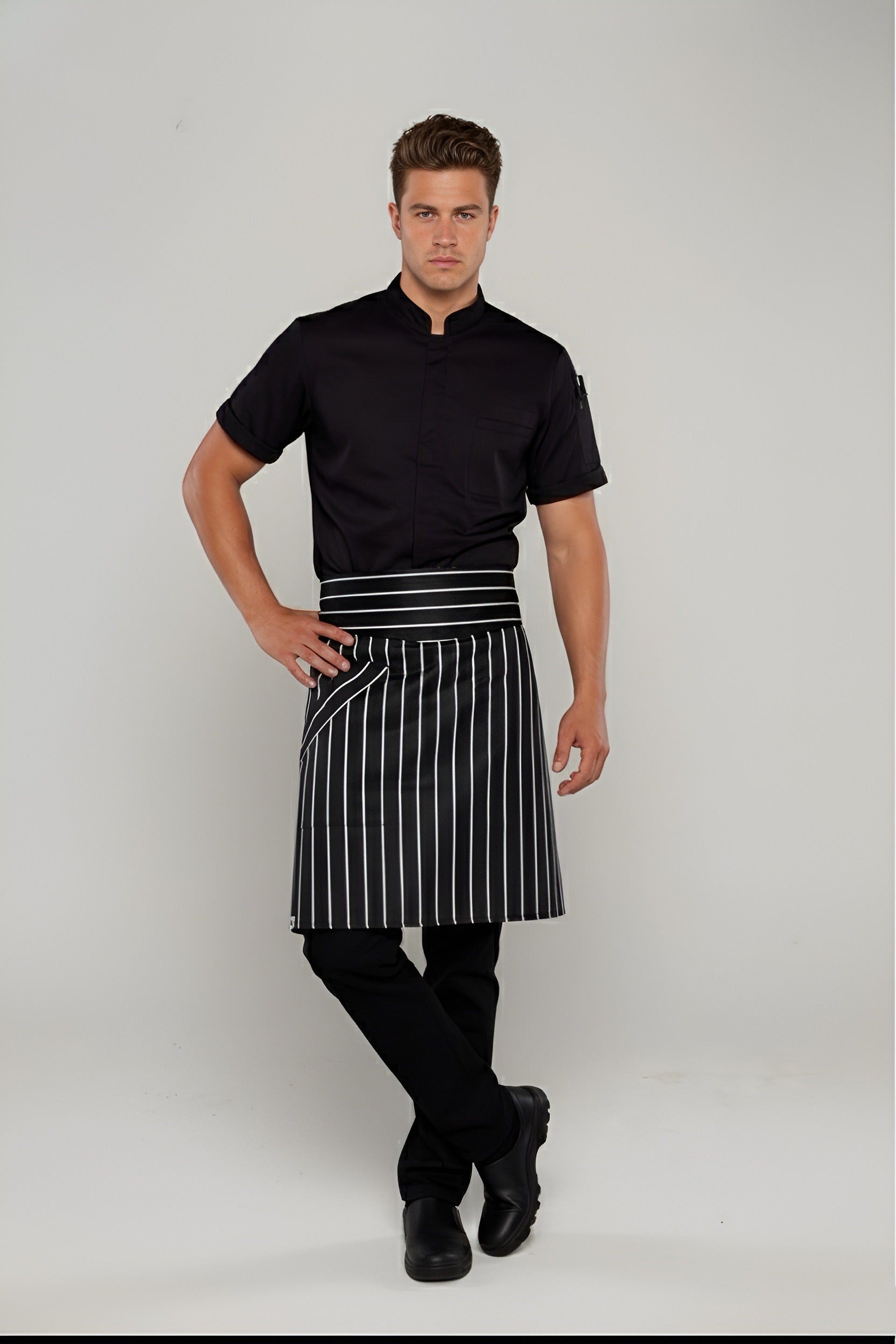 • Waist apron black/white stripes