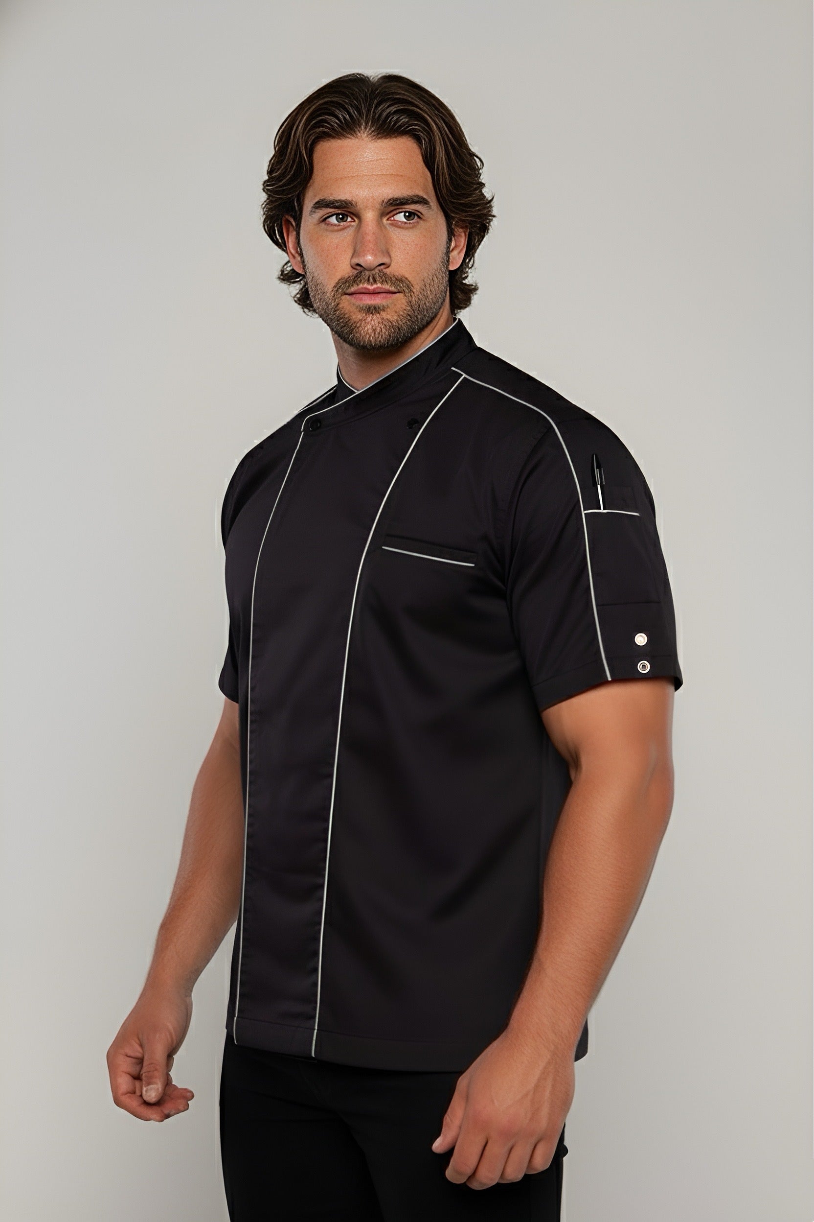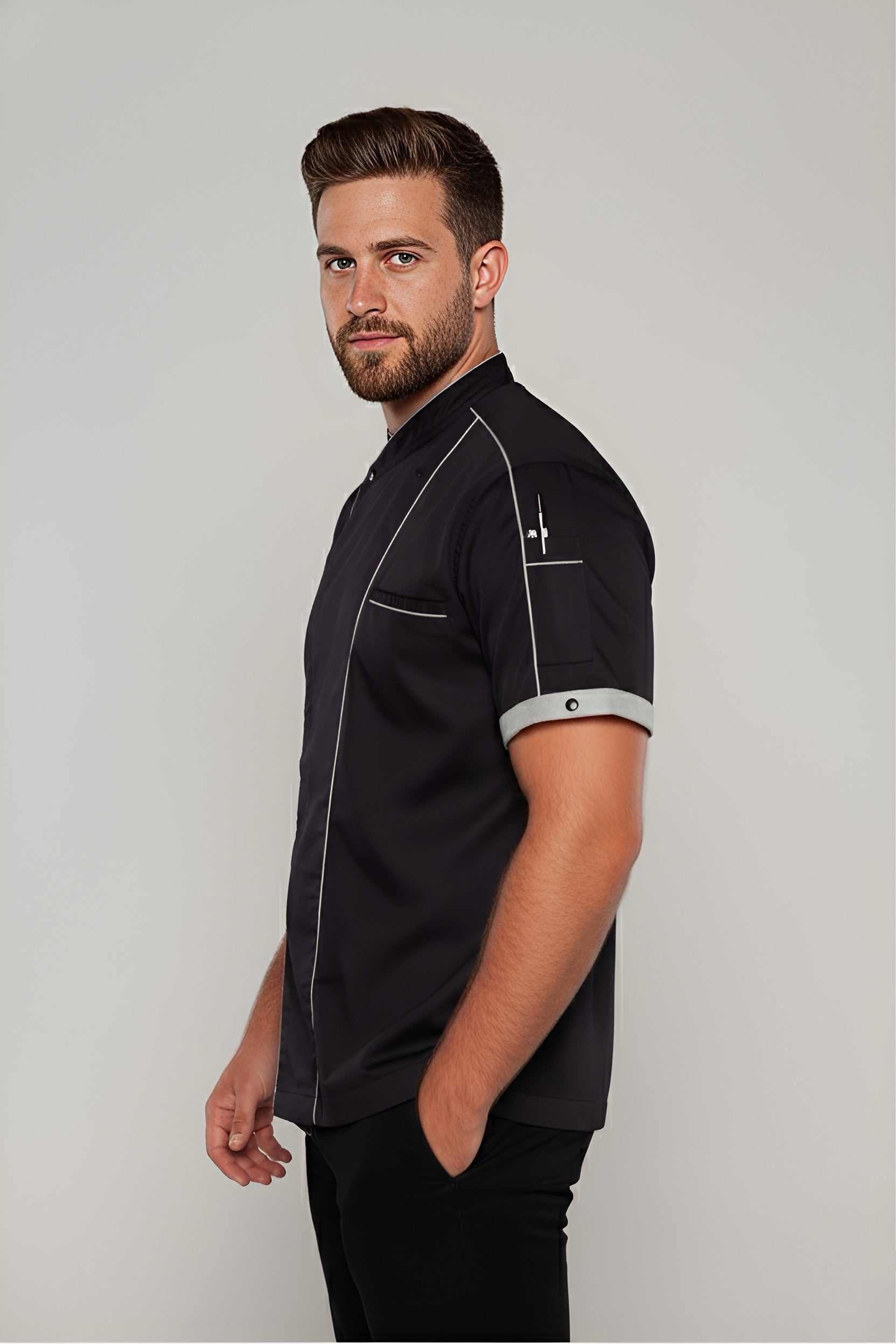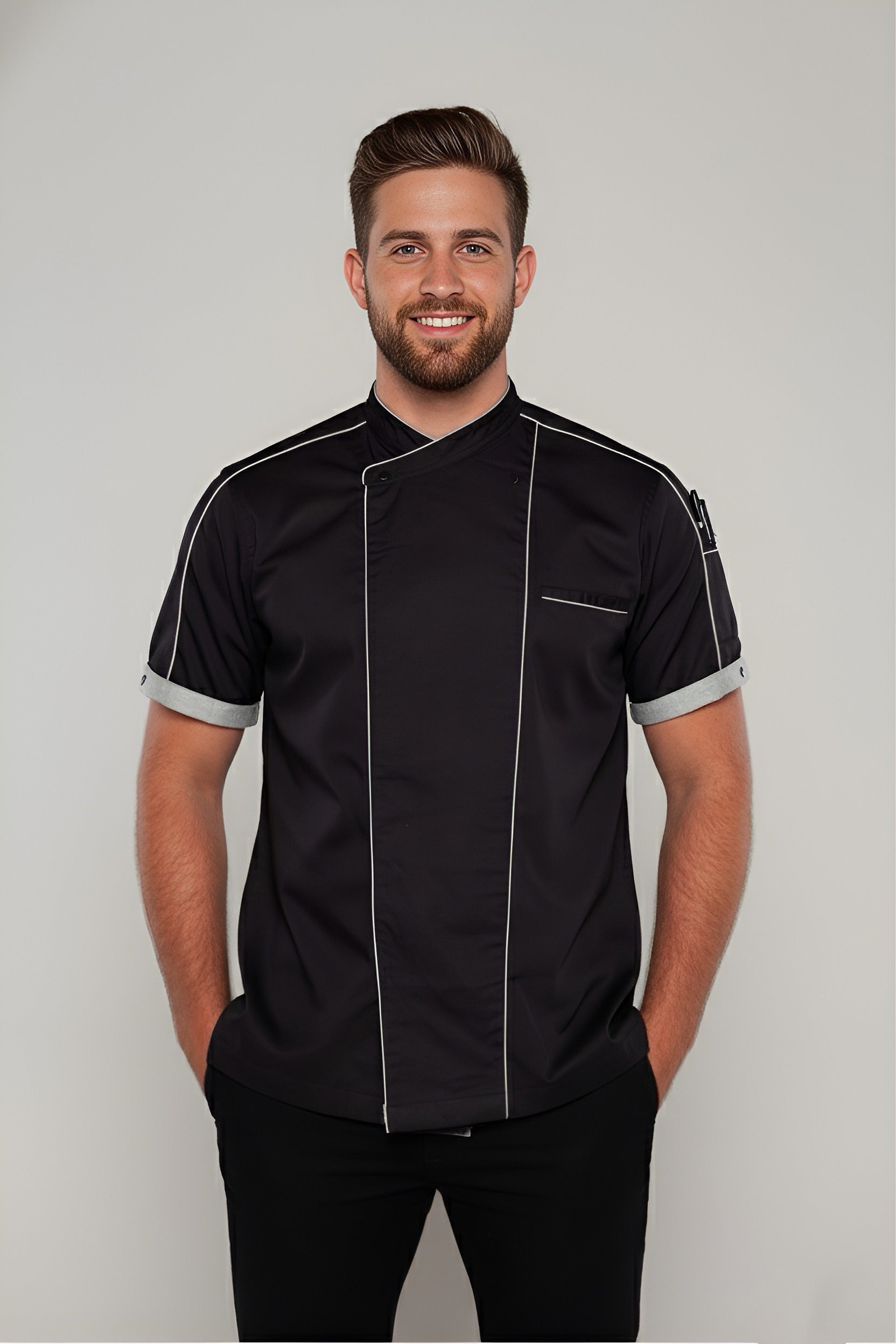 Chef Jacket Black with Grey Trim and Coolvent Bryan