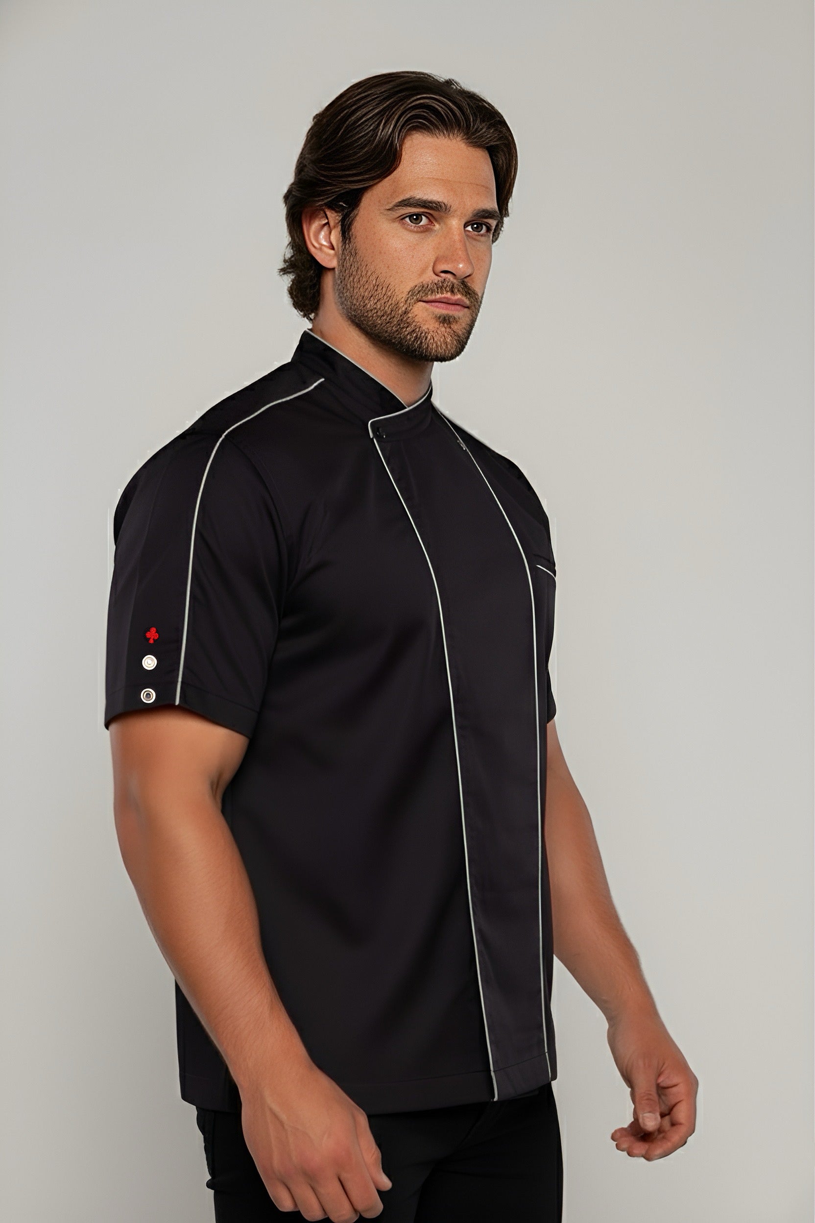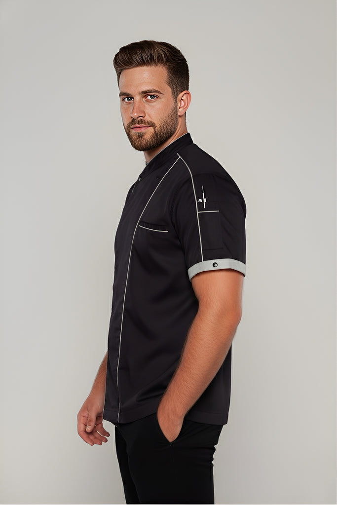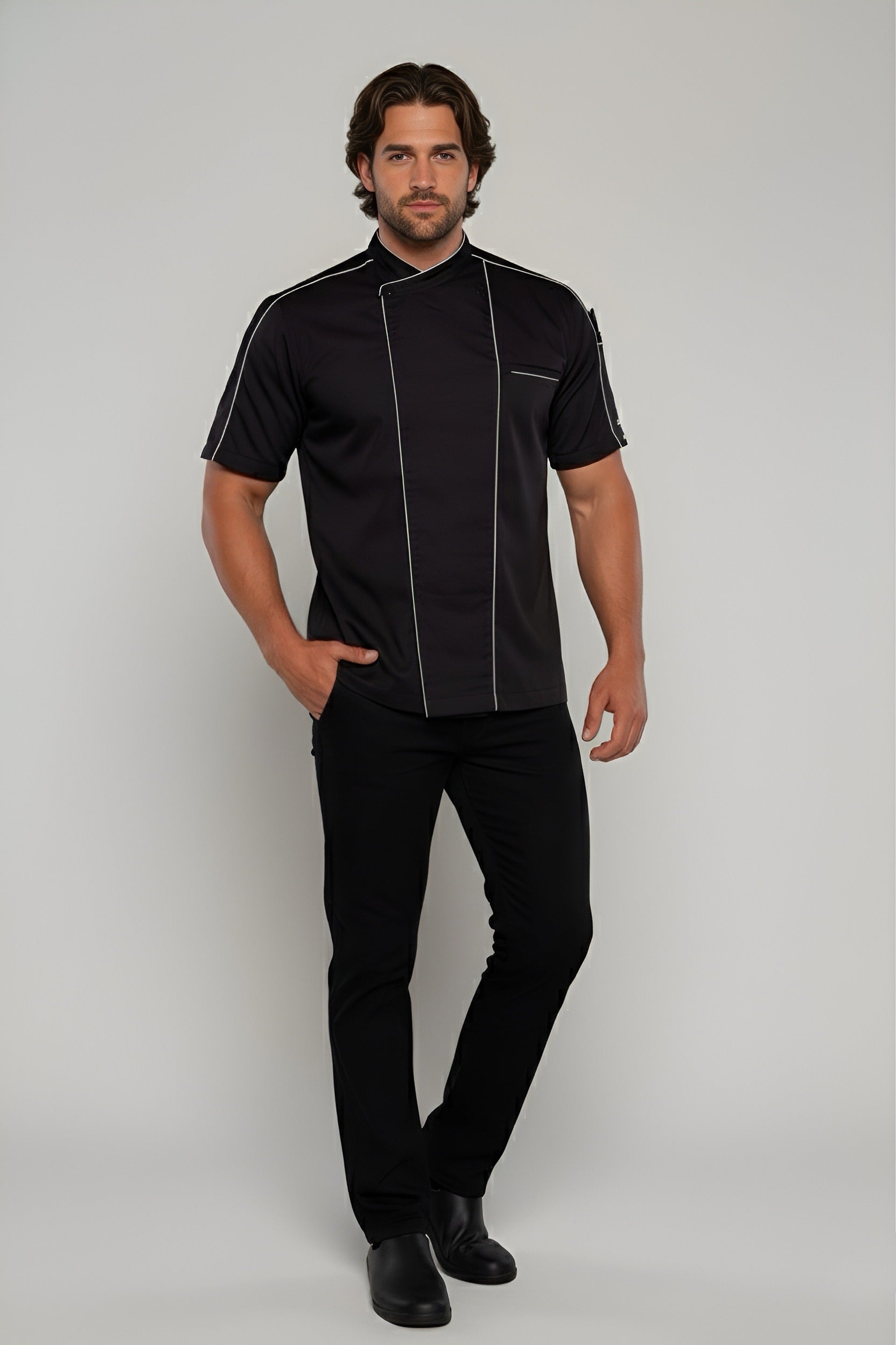 Chef Jacket Black with Grey Trim and Coolvent Bryan