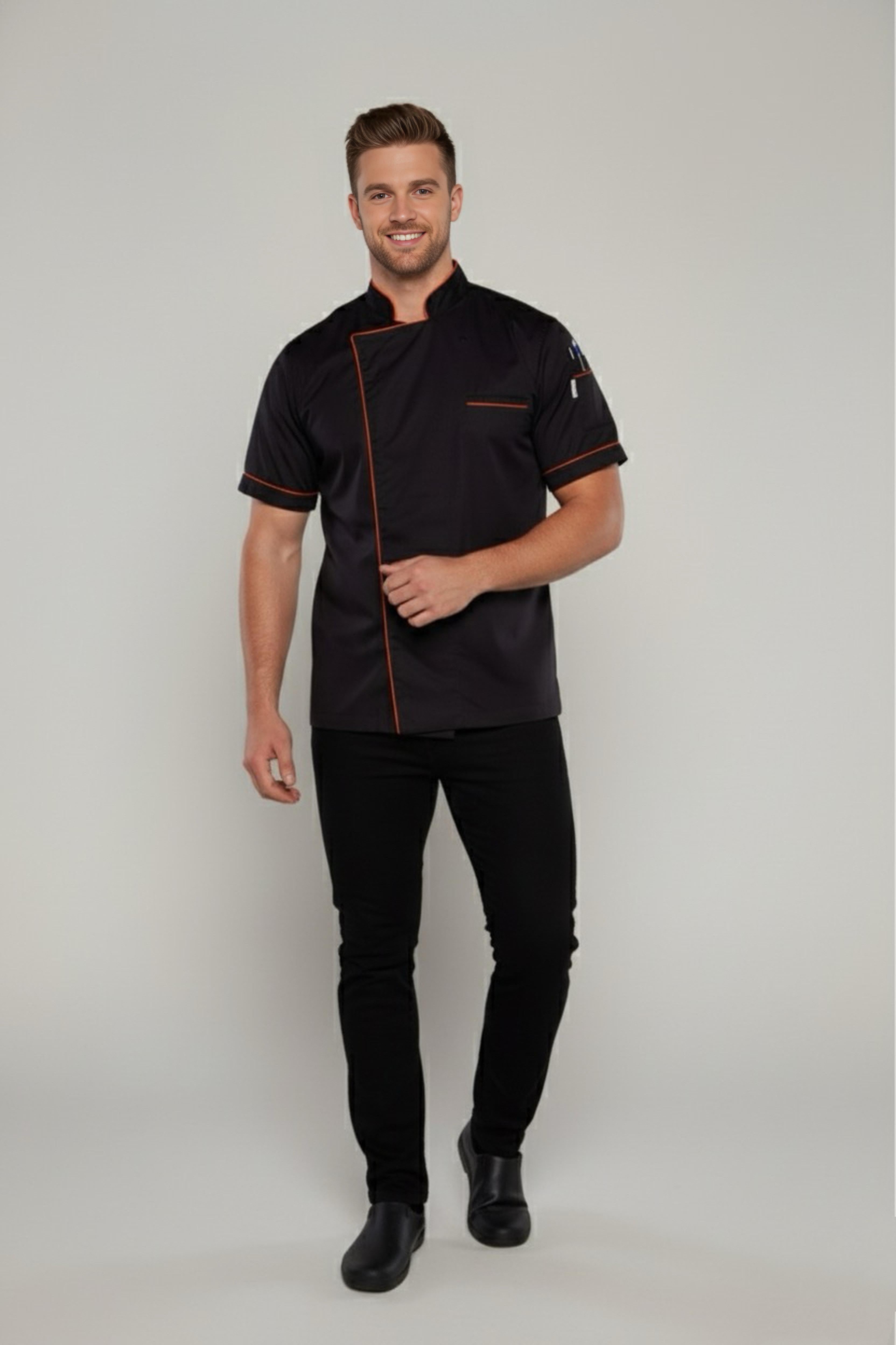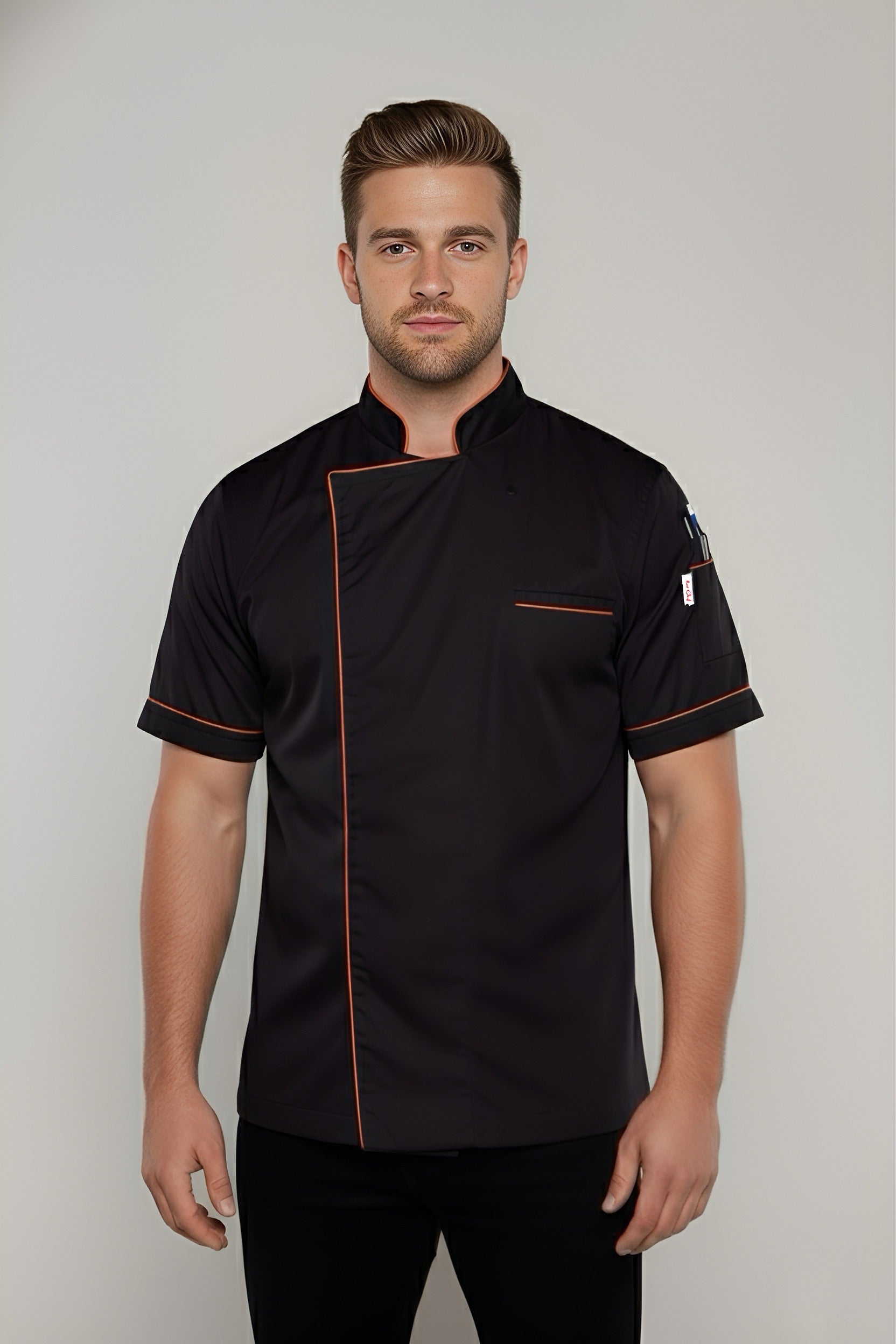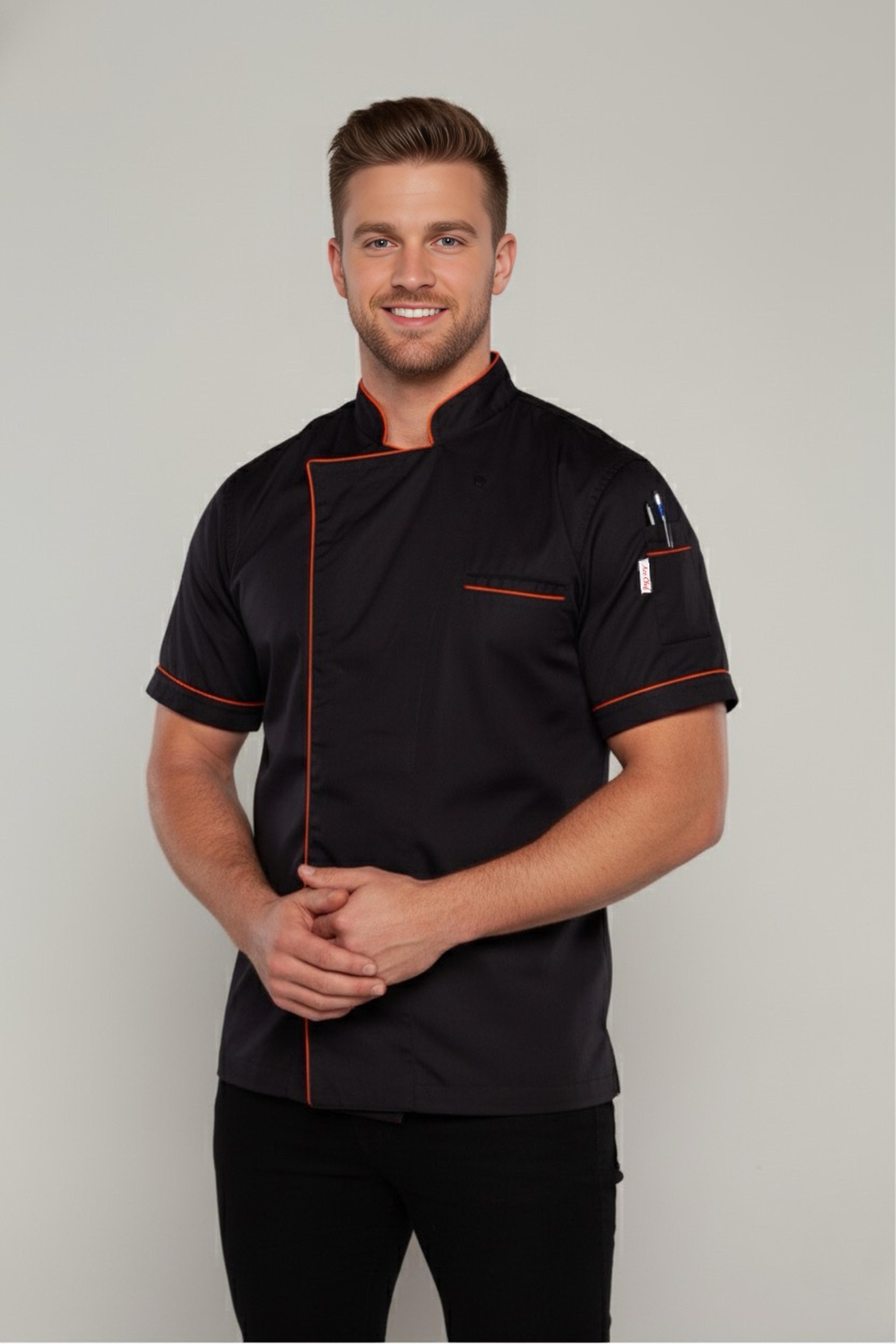 Gazi Chef jacket Black with Orange Trim and Coolvent