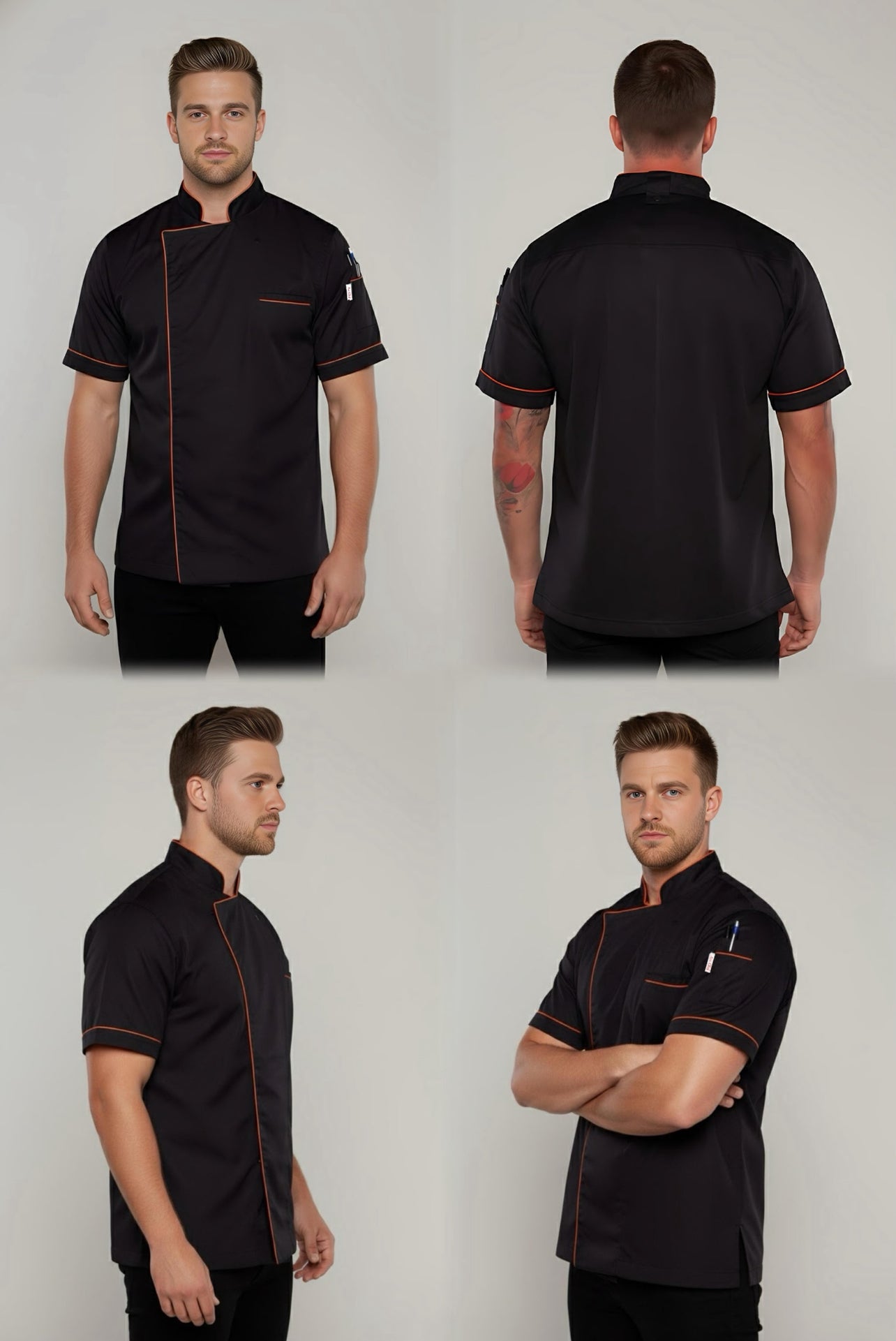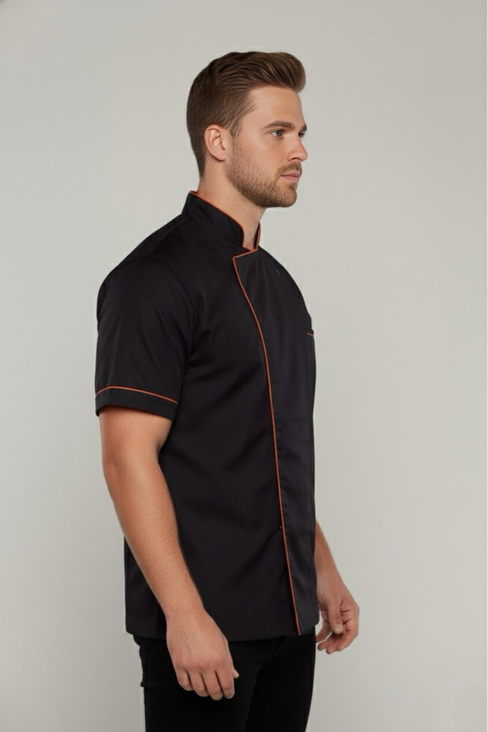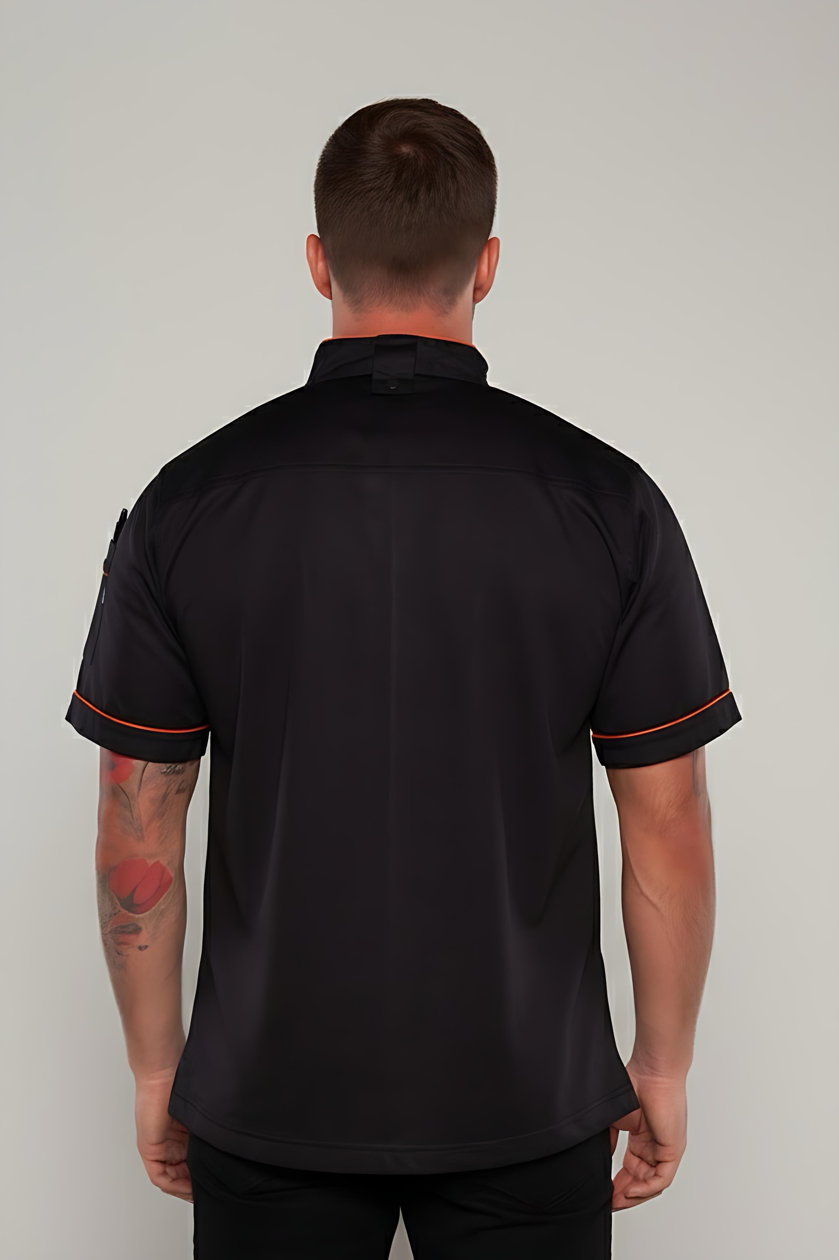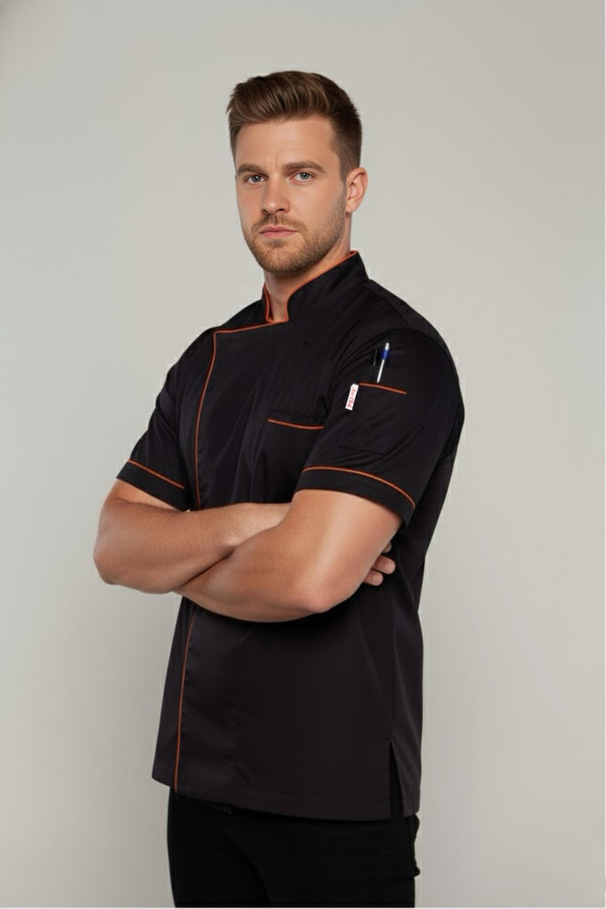 Gazi Chef jacket Black with Orange Trim and Coolvent