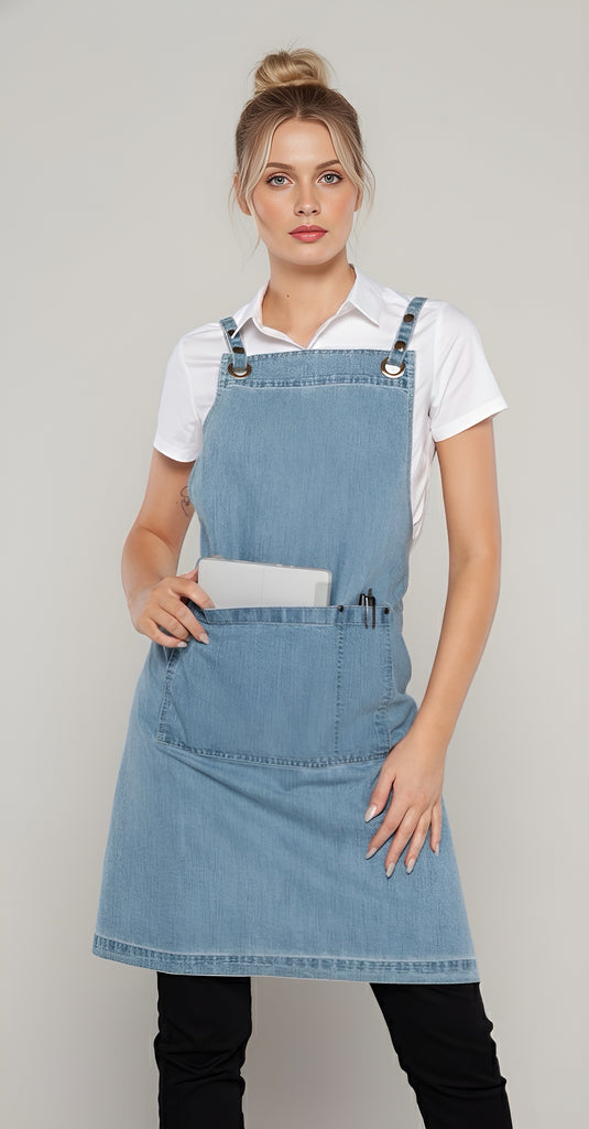 Introducing the Bondi Crossover Apron, a contemporary essential designed for style, durability, and functionality. Crafted from a resilient Poly/Blend fabric, this apron ensures longevity and comfort in various environments. This Apron also comes in denim option