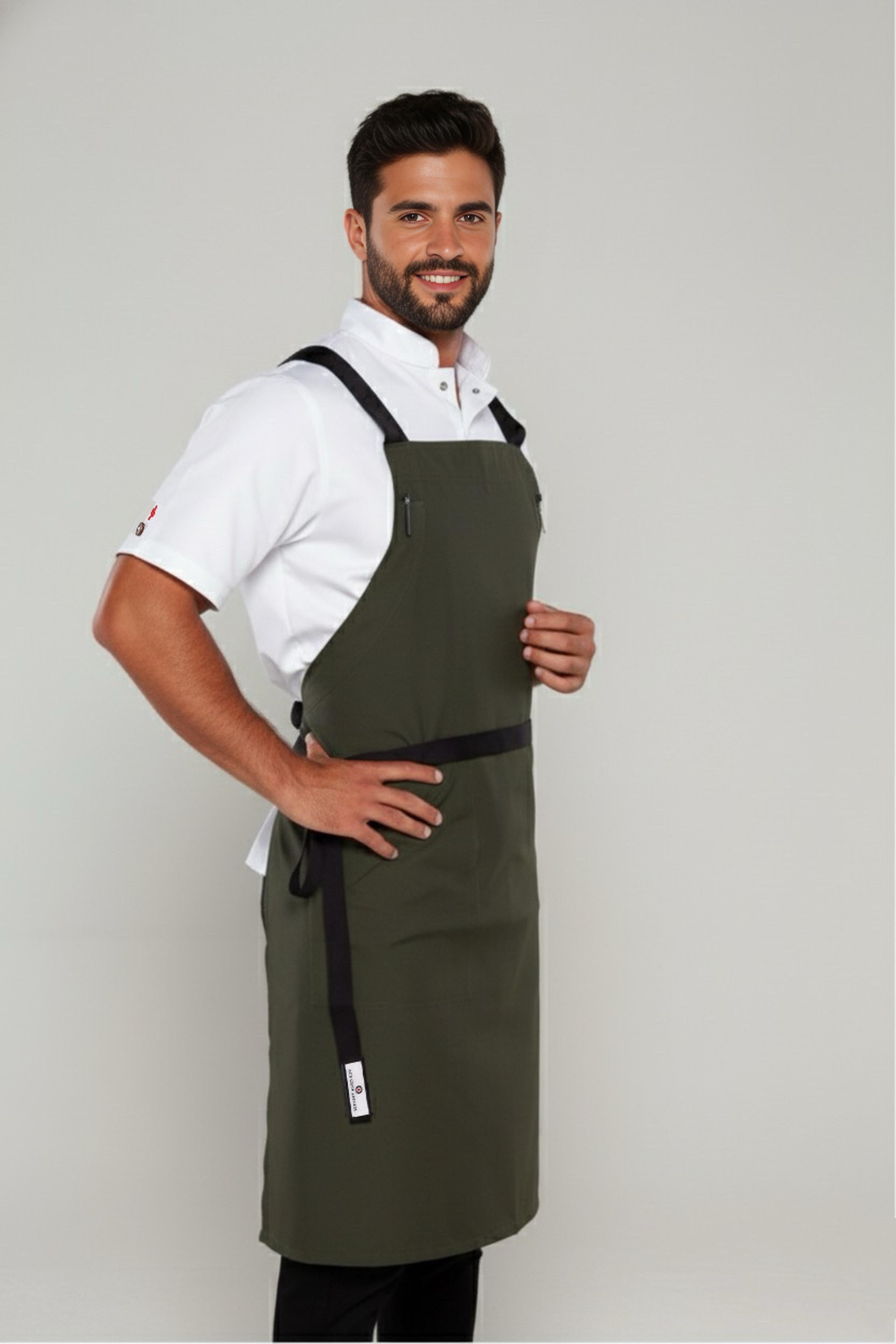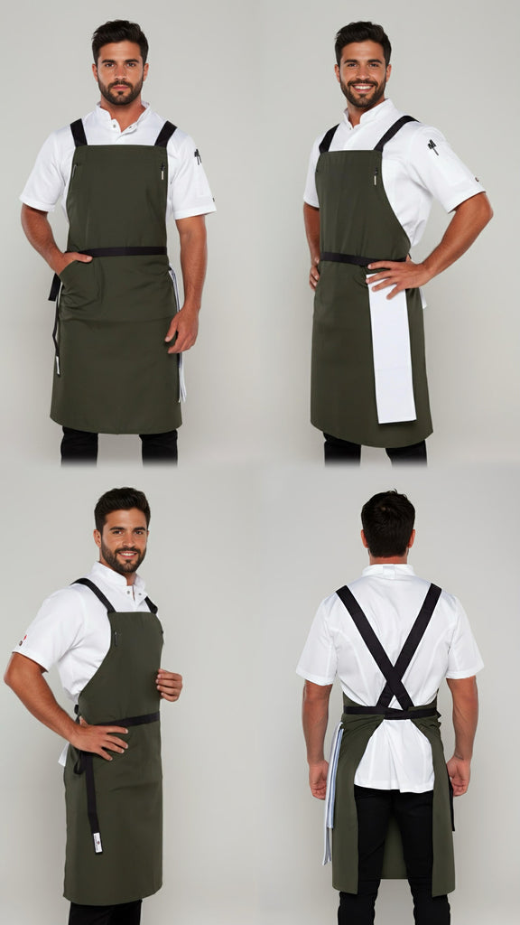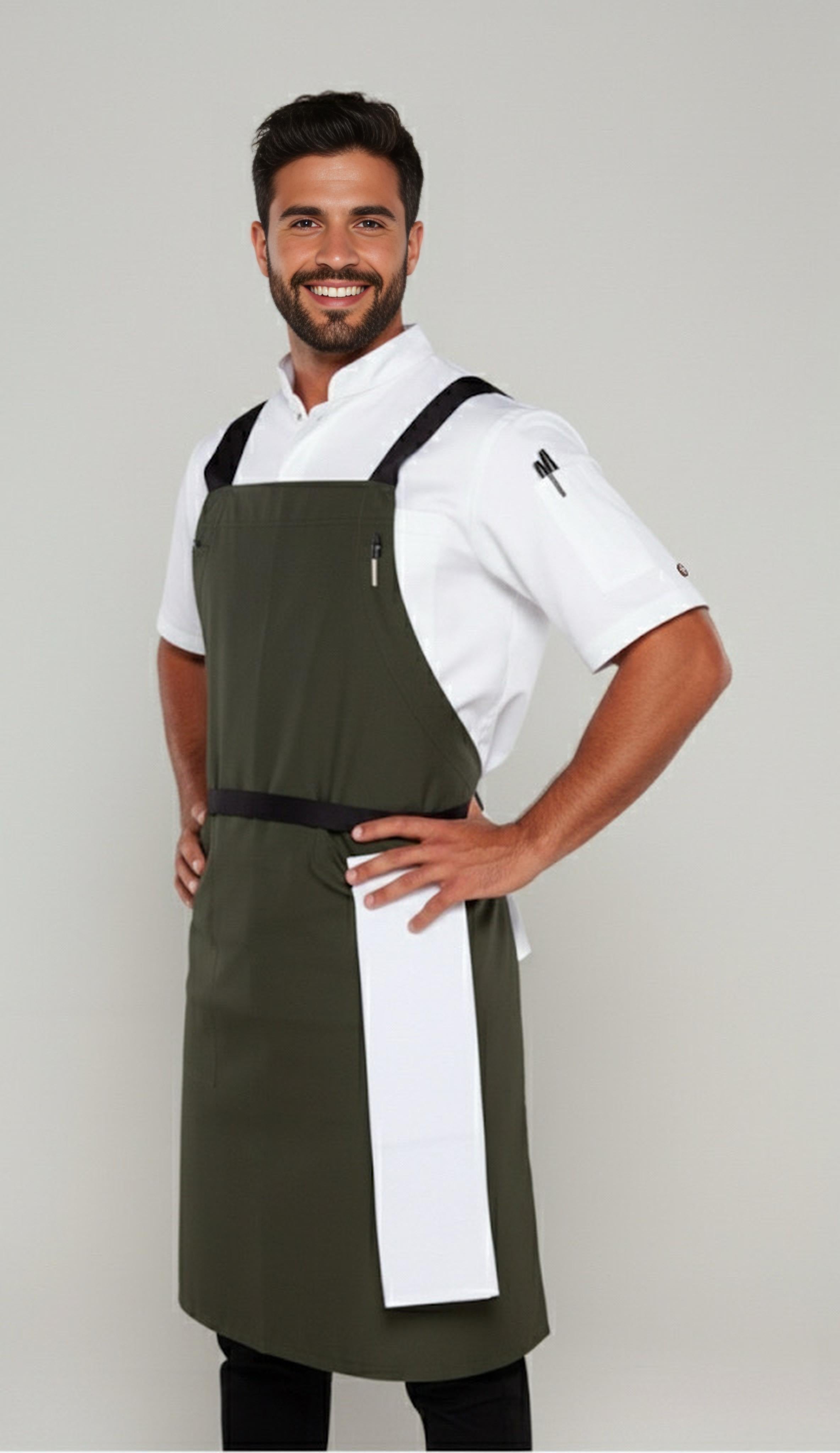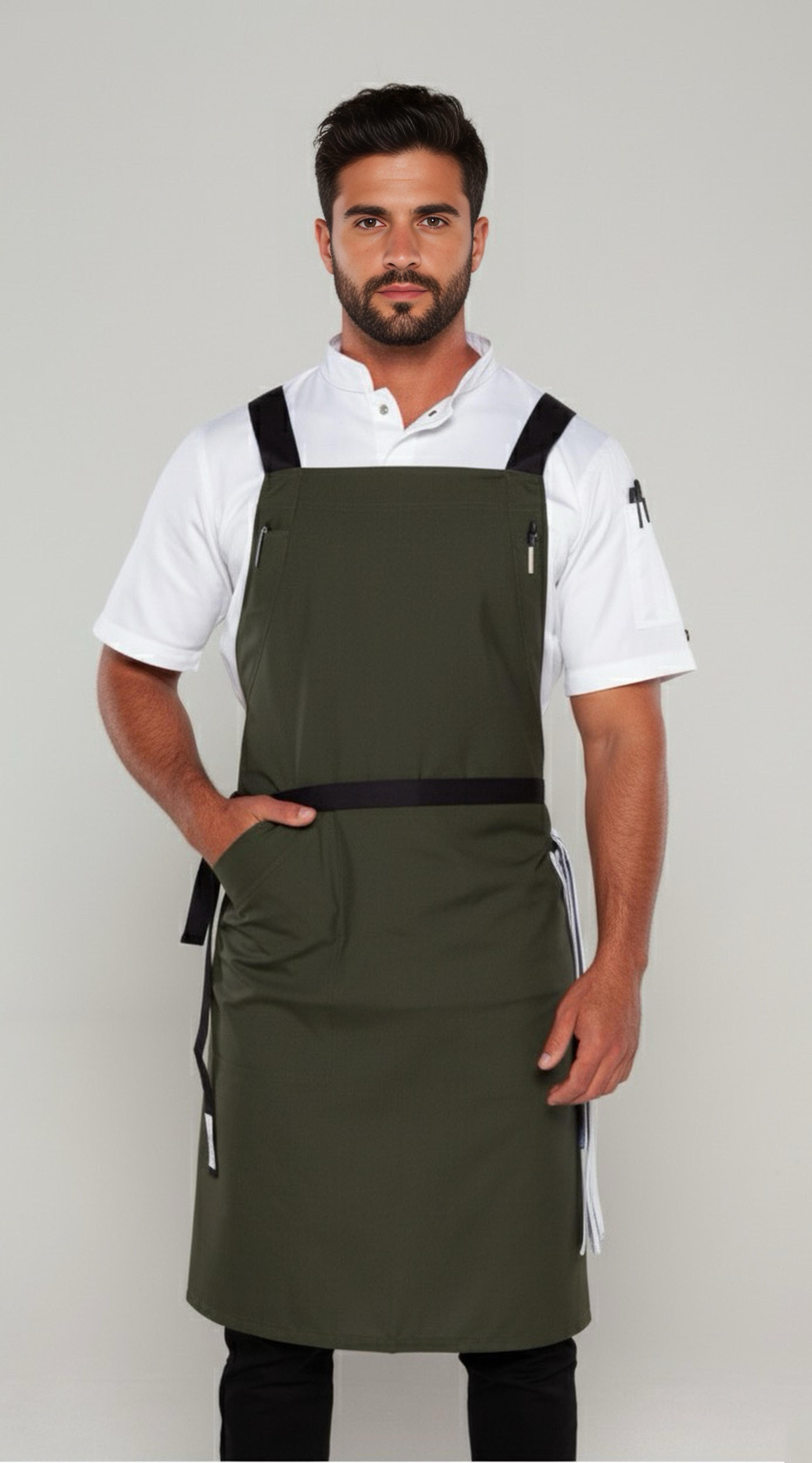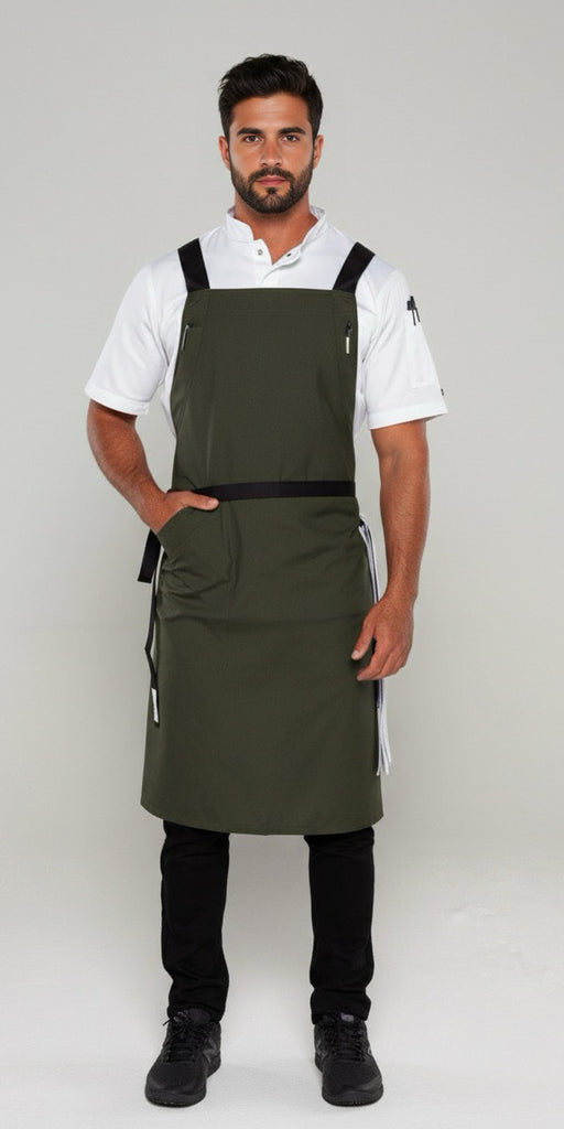 BYRON Crossover Chef apron Dark Green with black straps