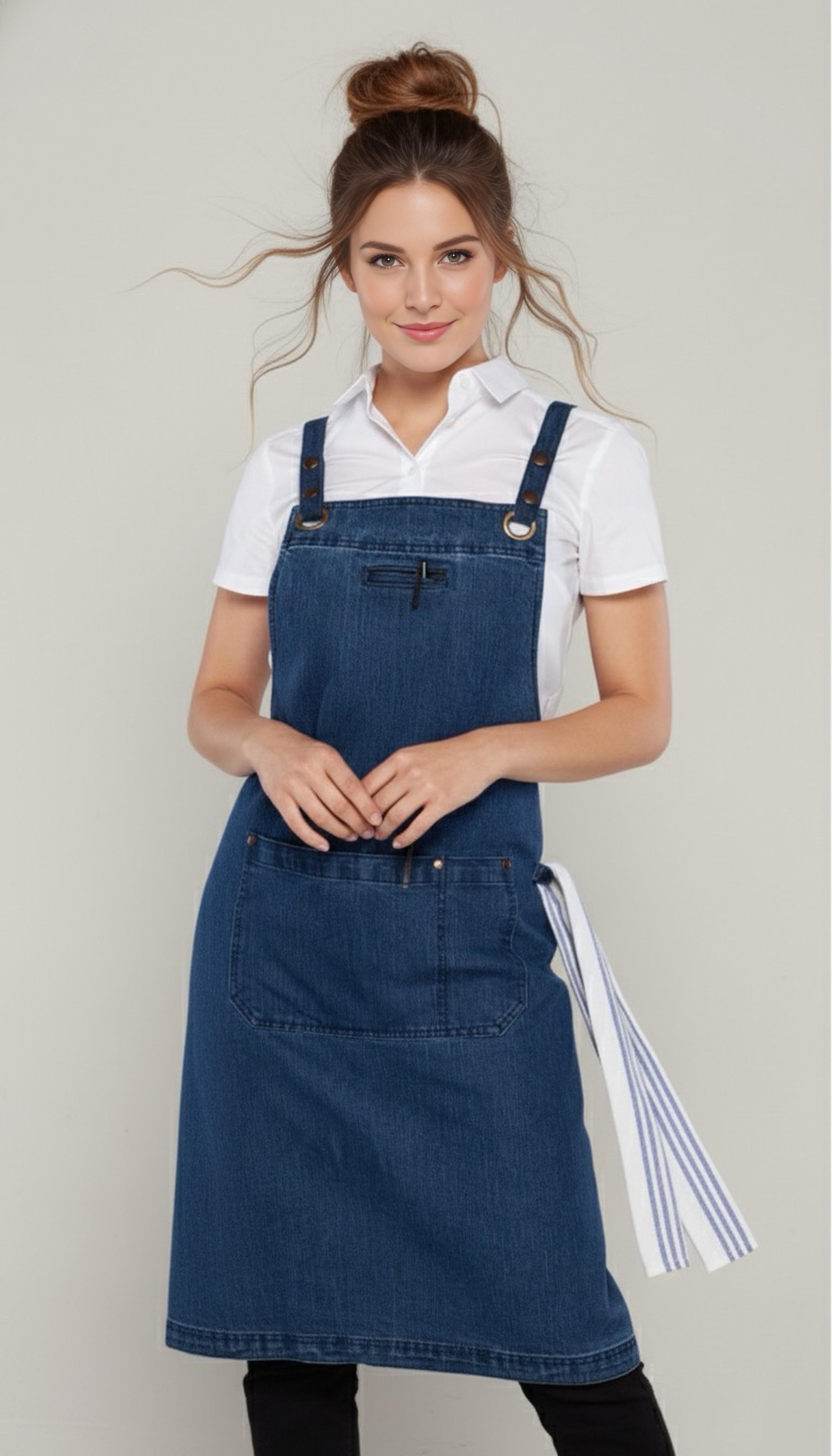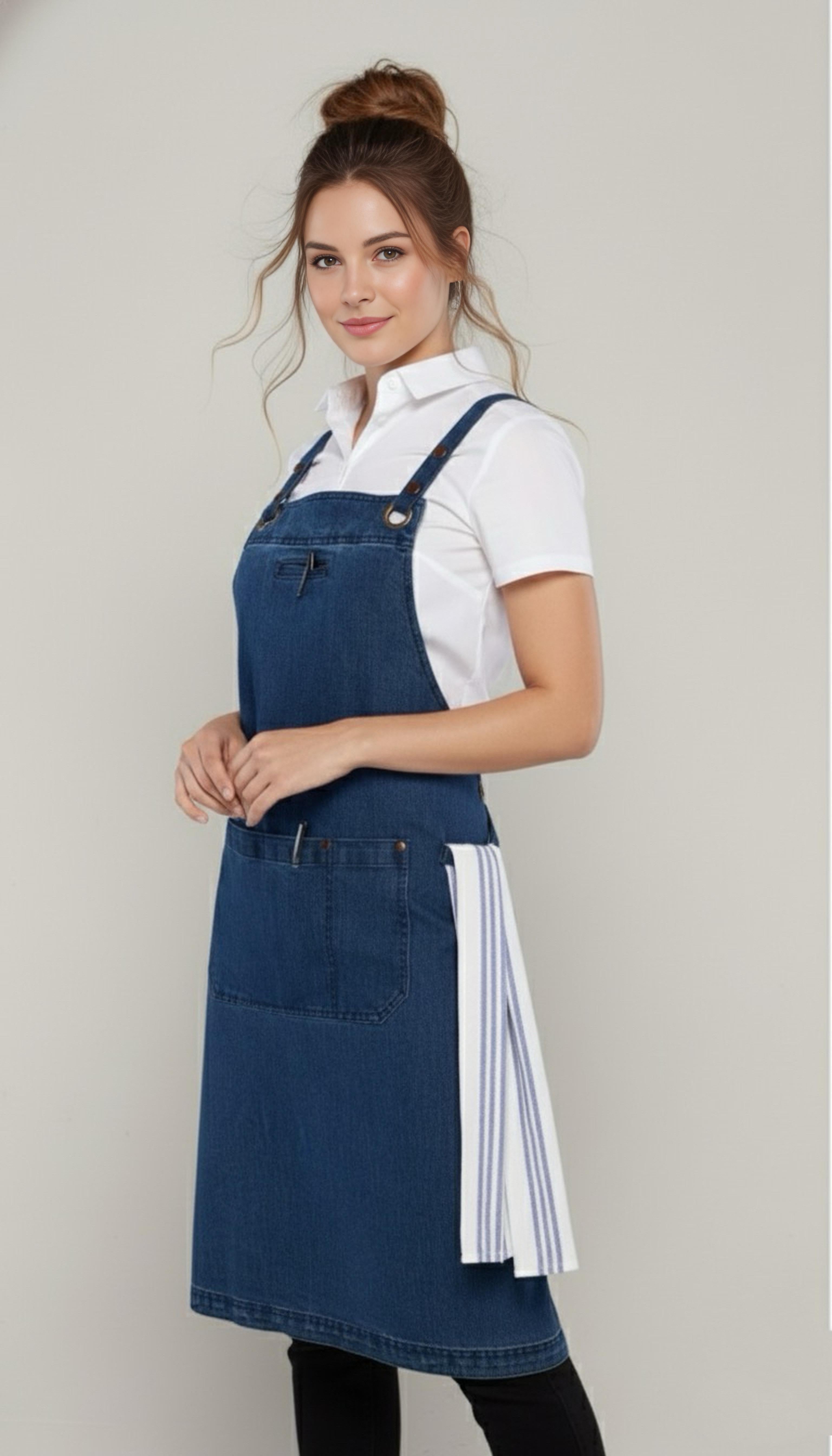• Denim Aprons may fade over time