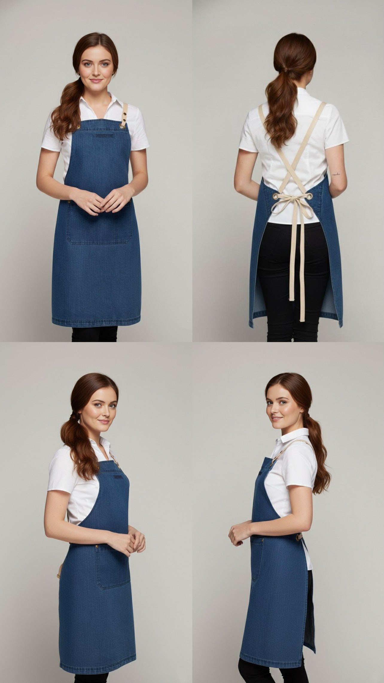 • Denim Aprons may fade over time
