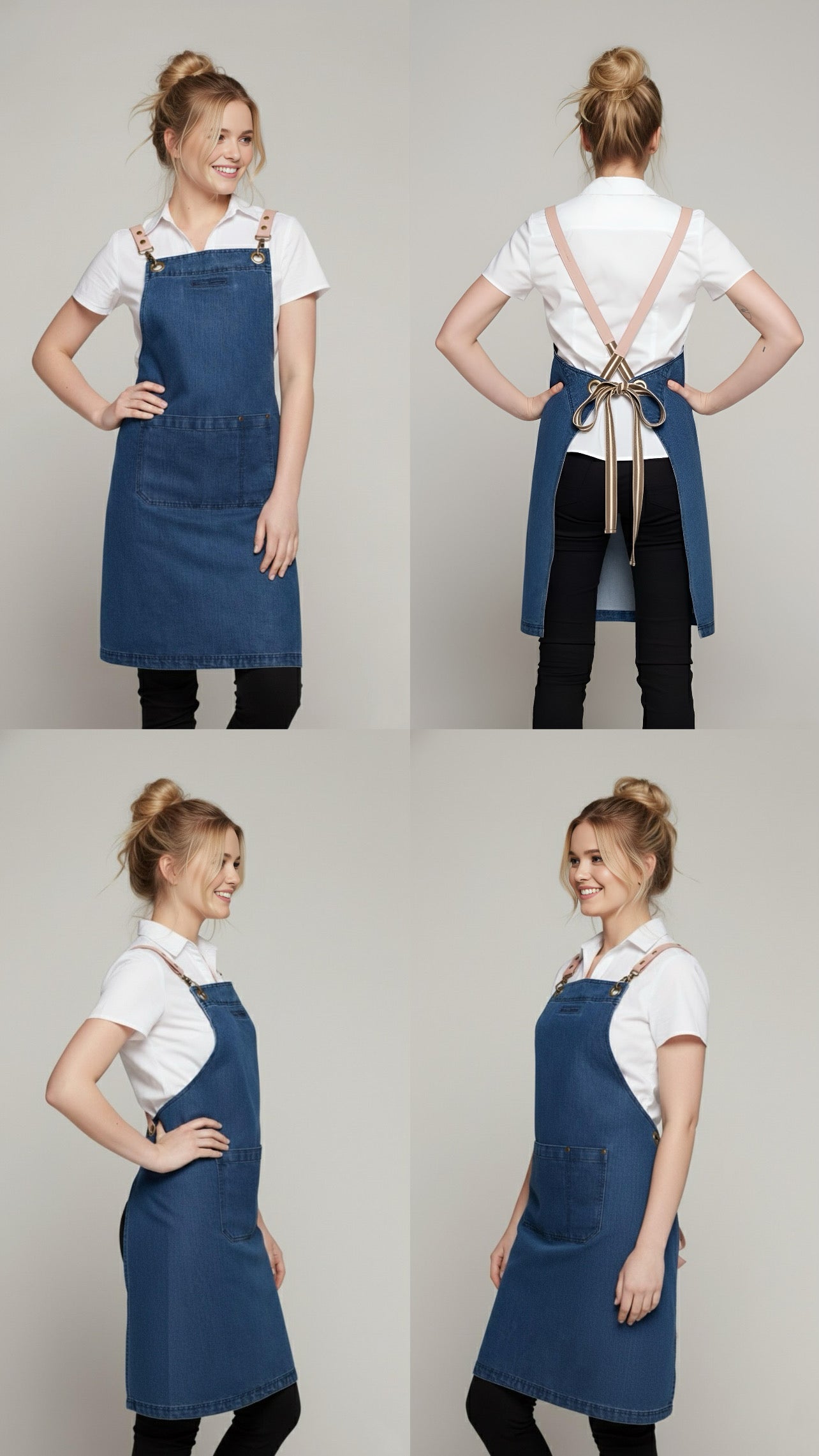 • Denim Aprons may fade over time