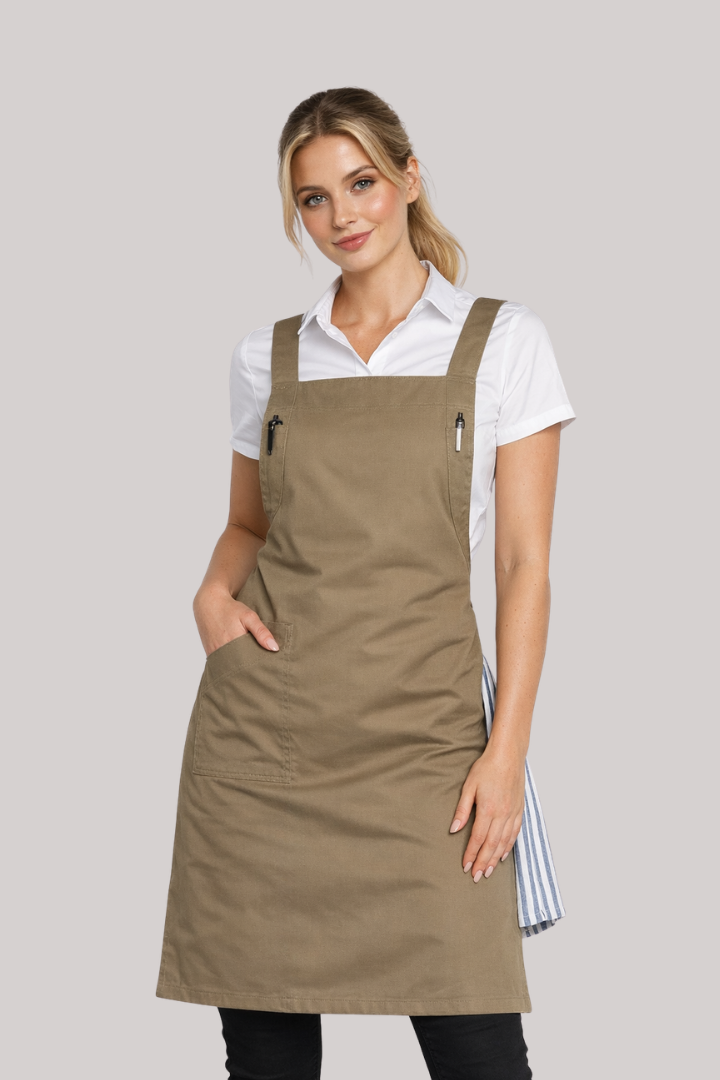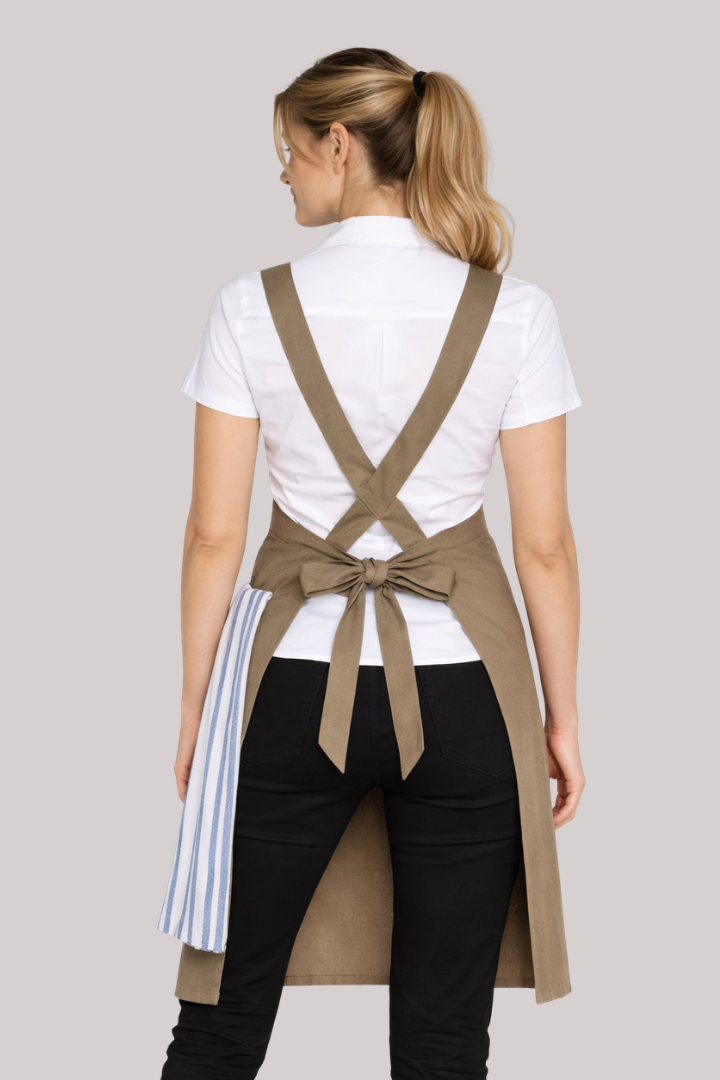 The Orthodox Cross Over Apron is designed for hospitality professionals who need comfort and durability during long shifts.