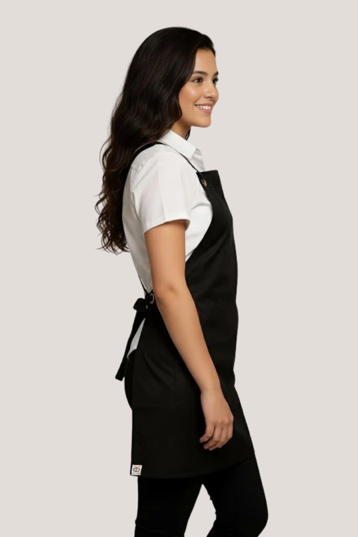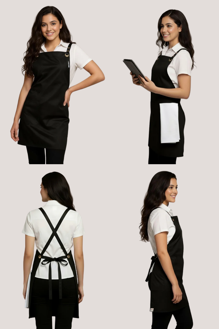 The Bondi Crossover Apron – Interchangeable Straps is designed for hospitality professionals who need durability, comfort, and a modern look during long shifts.