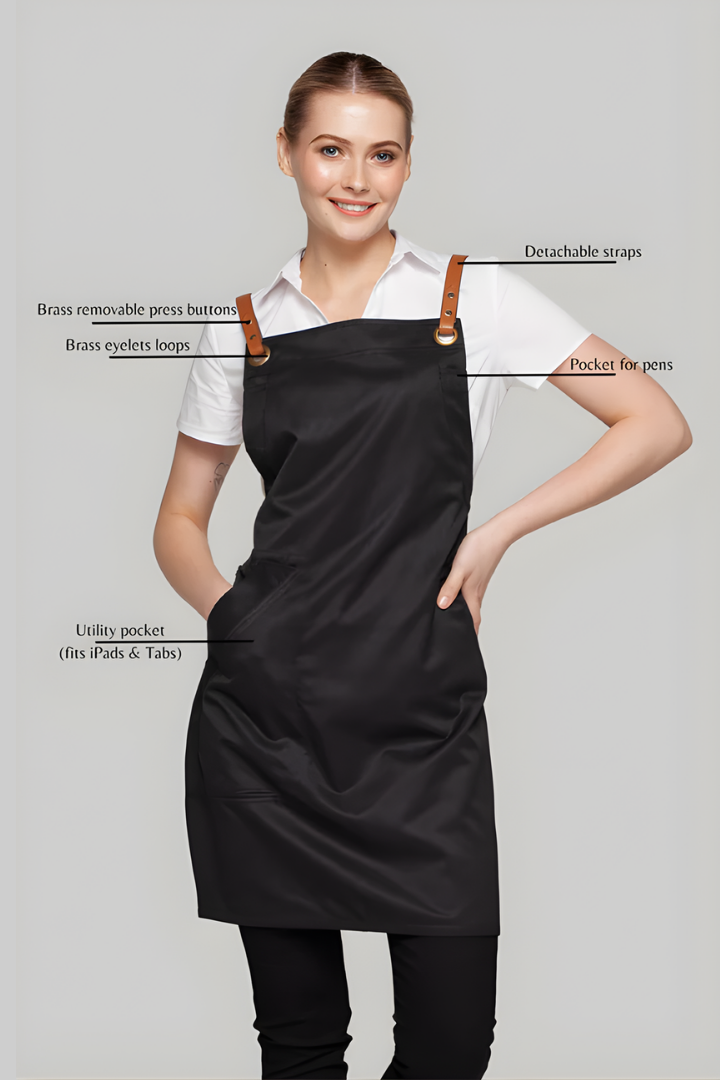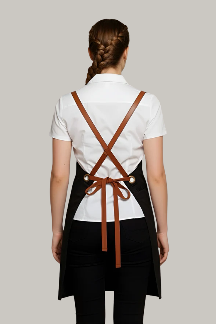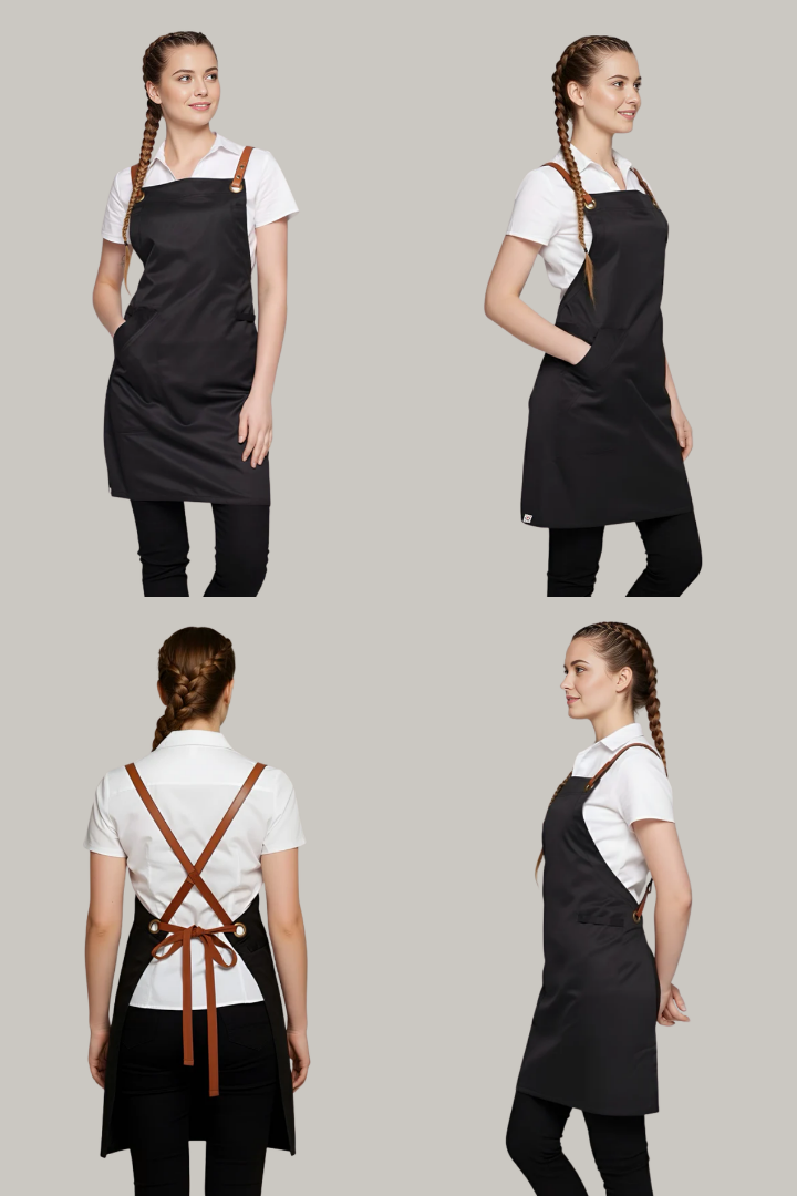 The Bondi Crossover Apron – Interchangeable Straps is designed for hospitality professionals who need durability, comfort, and a modern look during long shifts.
