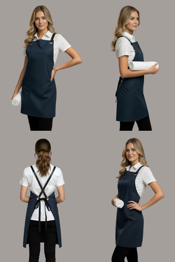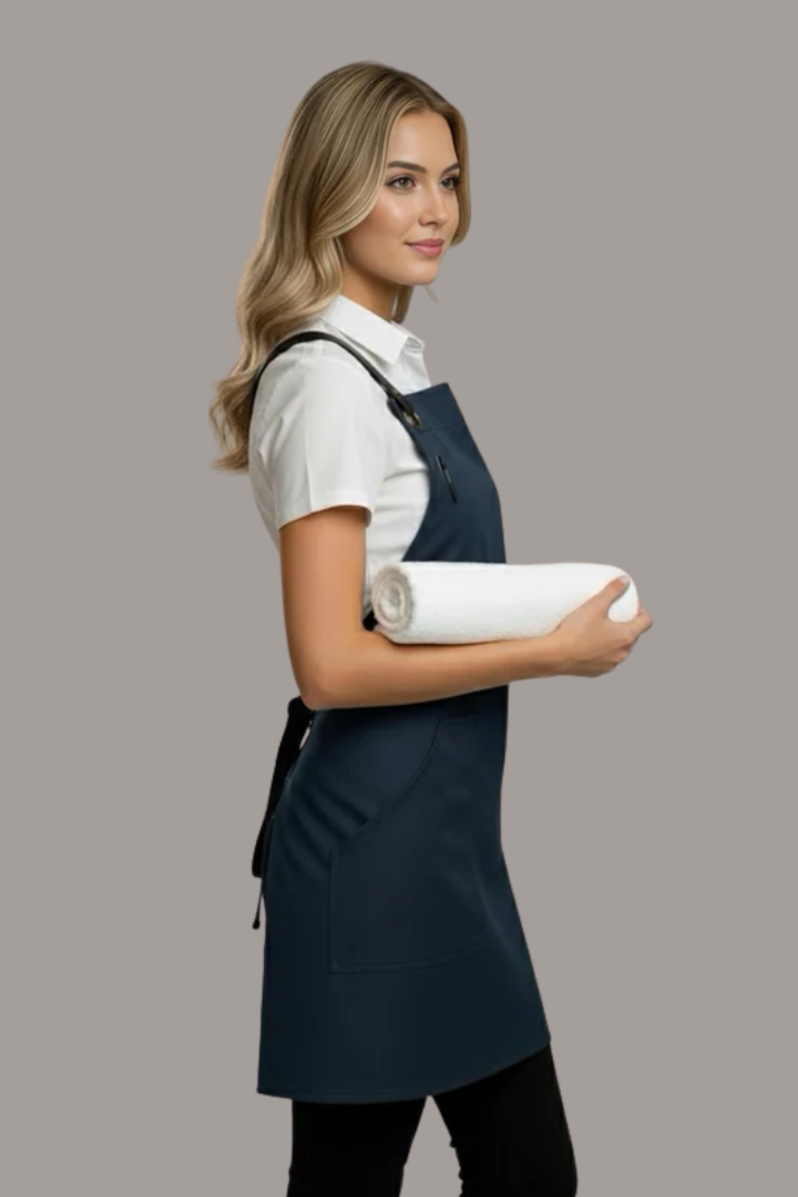 The Bondi Crossover Apron is designed for modern hospitality professionals who need durability, comfort, and a stylish look during long shifts. Made from strong denim fabric, this apron combines practical functionality with a contemporary café and restaurant aesthetic.