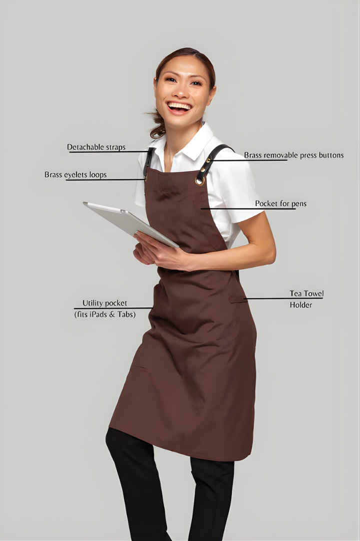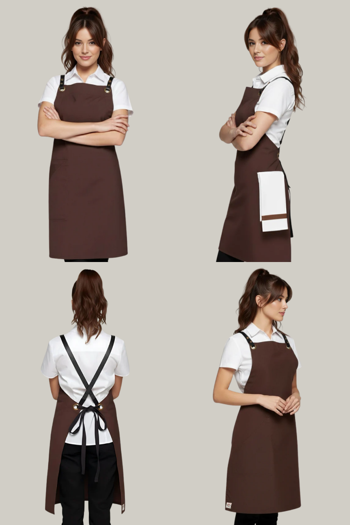 The Bondi Crossover Apron – Interchangeable Straps is designed for hospitality professionals who need durability, comfort, and a modern look during long shifts.