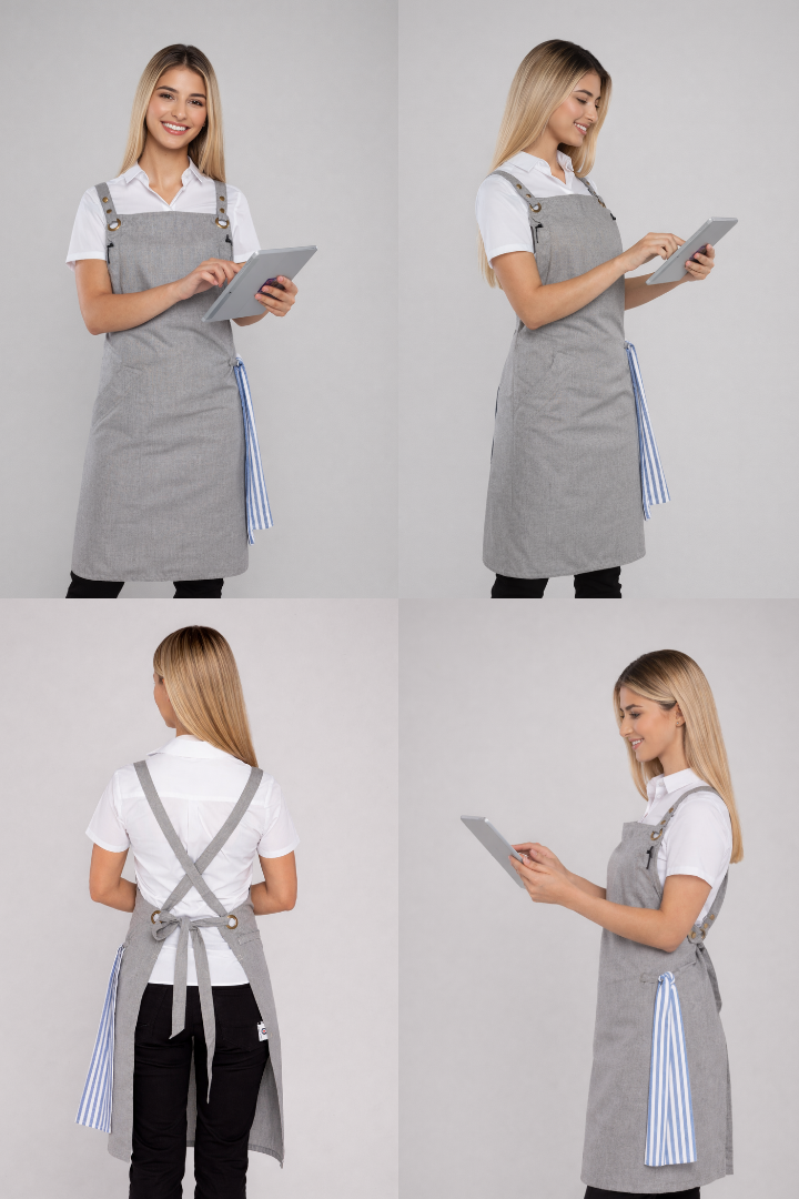 The Bondi Crossover Apron – Interchangeable Straps is designed for hospitality professionals who need durability, comfort, and a modern look during long shifts.