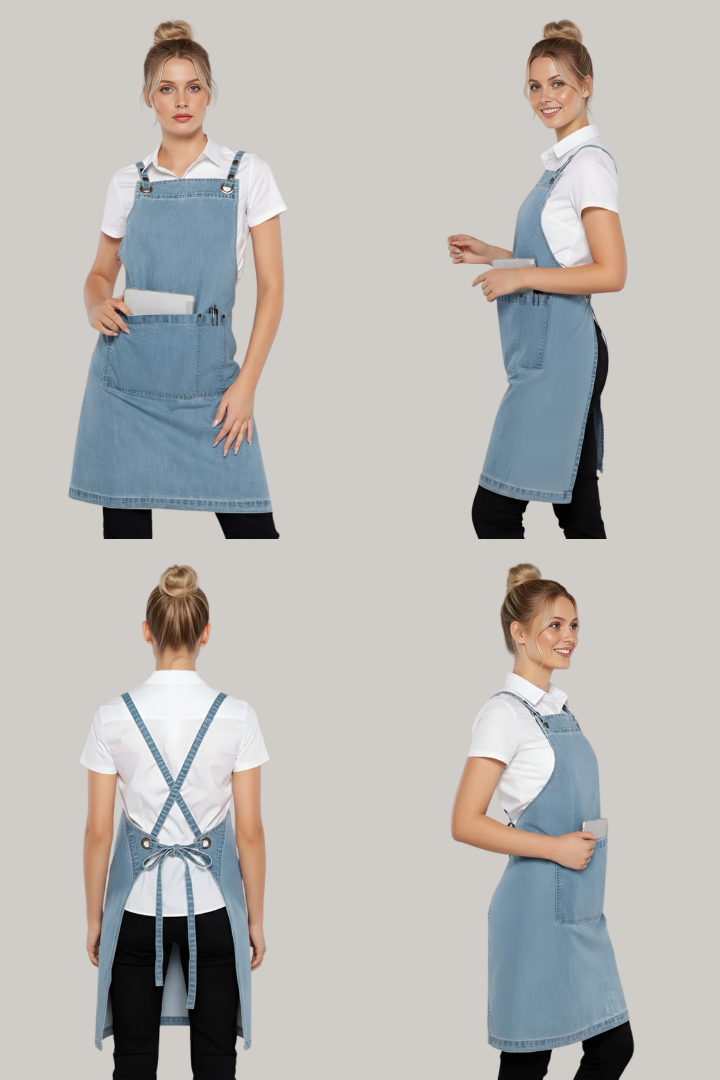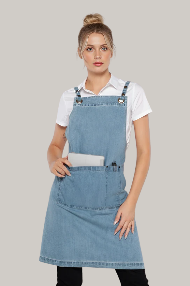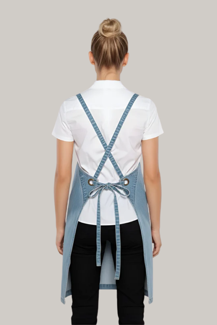 The Bondi Crossover Apron – Interchangeable Straps is designed for hospitality professionals who need durability, comfort, and a modern look during long shifts.