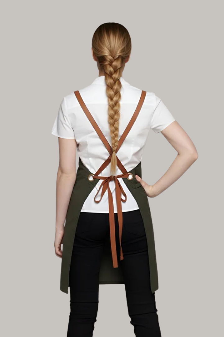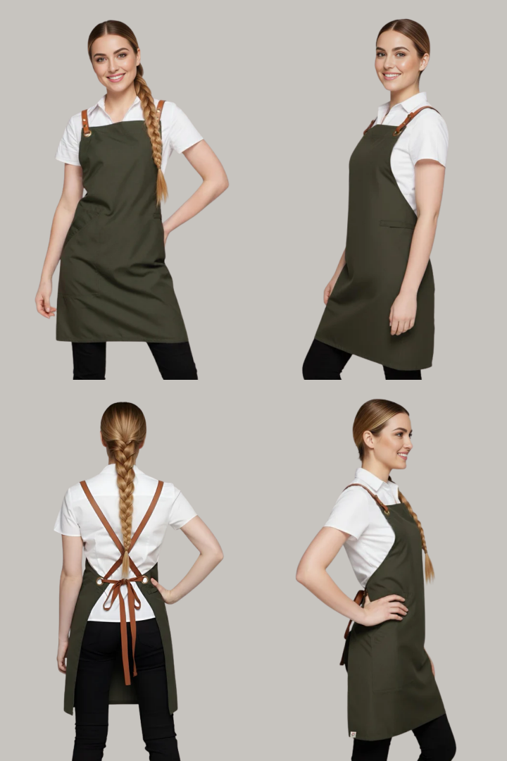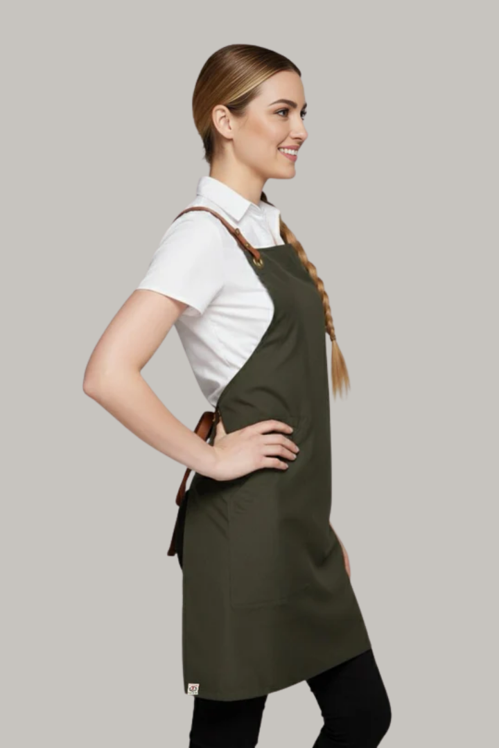 The Bondi Crossover Apron – Interchangeable Straps is designed for hospitality professionals who need durability, comfort, and a modern look during long shifts.