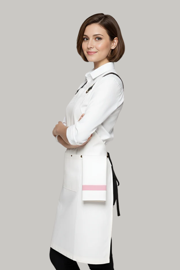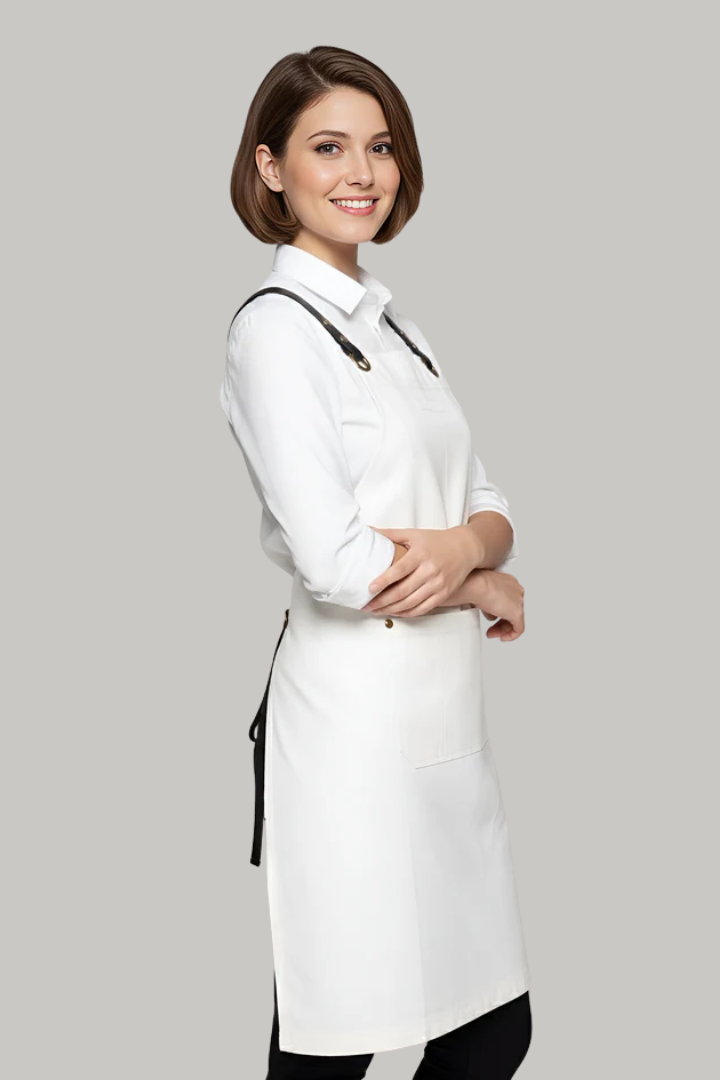The Bondi Crossover Apron – Interchangeable Straps is designed for hospitality professionals who need durability, comfort, and a modern look during long shifts.