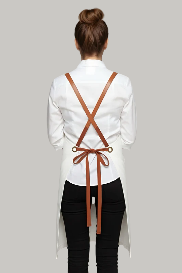 The Bondi Crossover Apron – Interchangeable Straps is designed for hospitality professionals who need durability, comfort, and a modern look during long shifts.