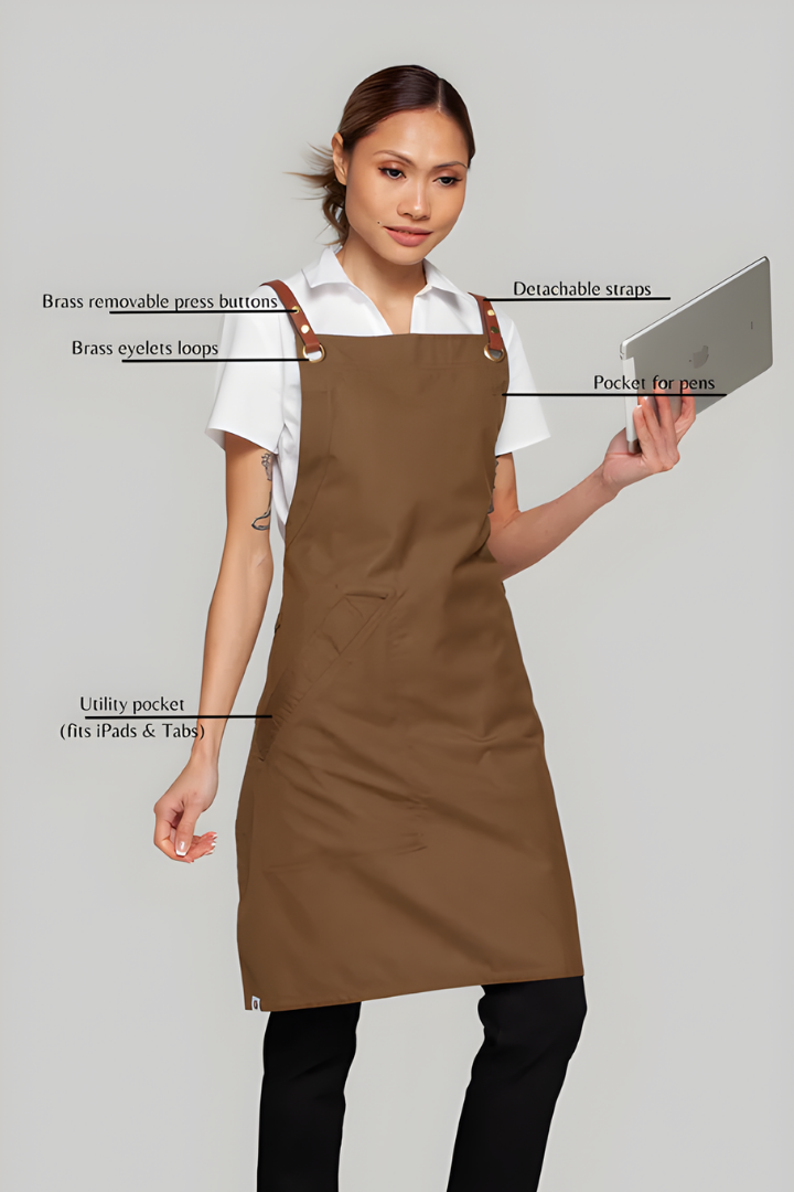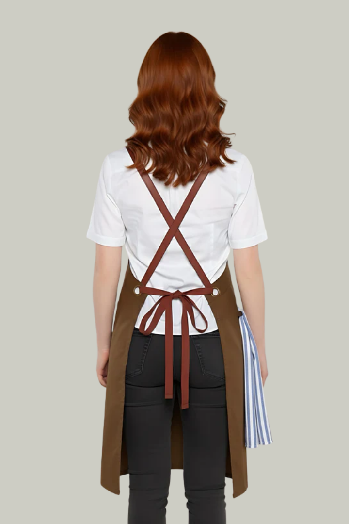 The Bondi Crossover Apron – Interchangeable Straps is designed for hospitality professionals who need durability, comfort, and a modern look during long shifts.