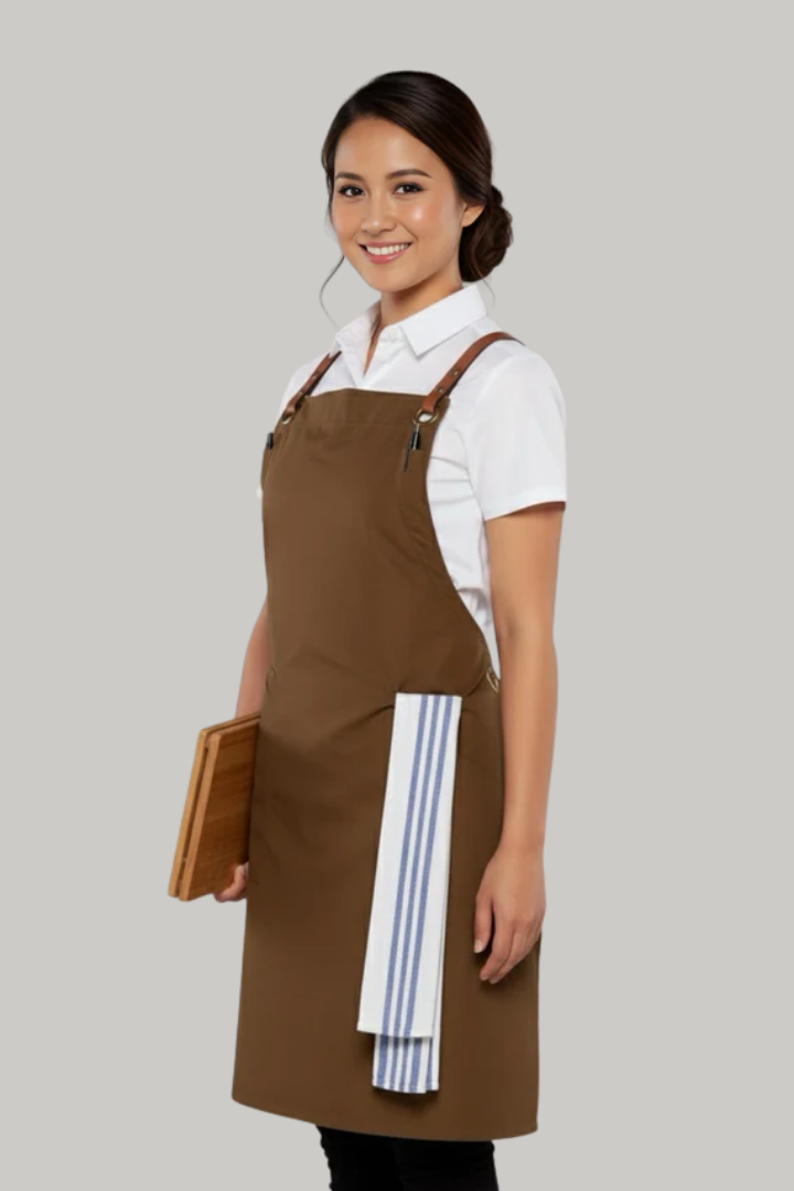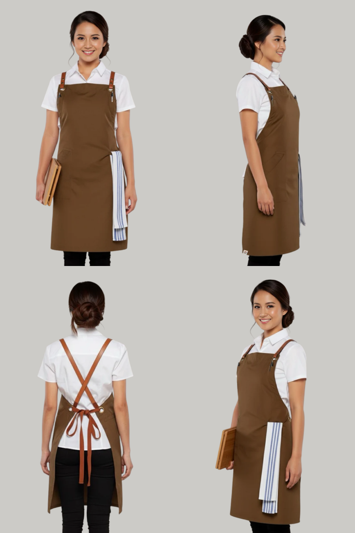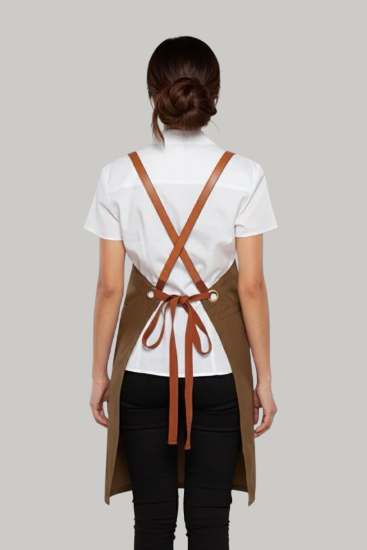 The Bondi Crossover Apron – Interchangeable Straps is designed for hospitality professionals who need durability, comfort, and a modern look during long shifts.