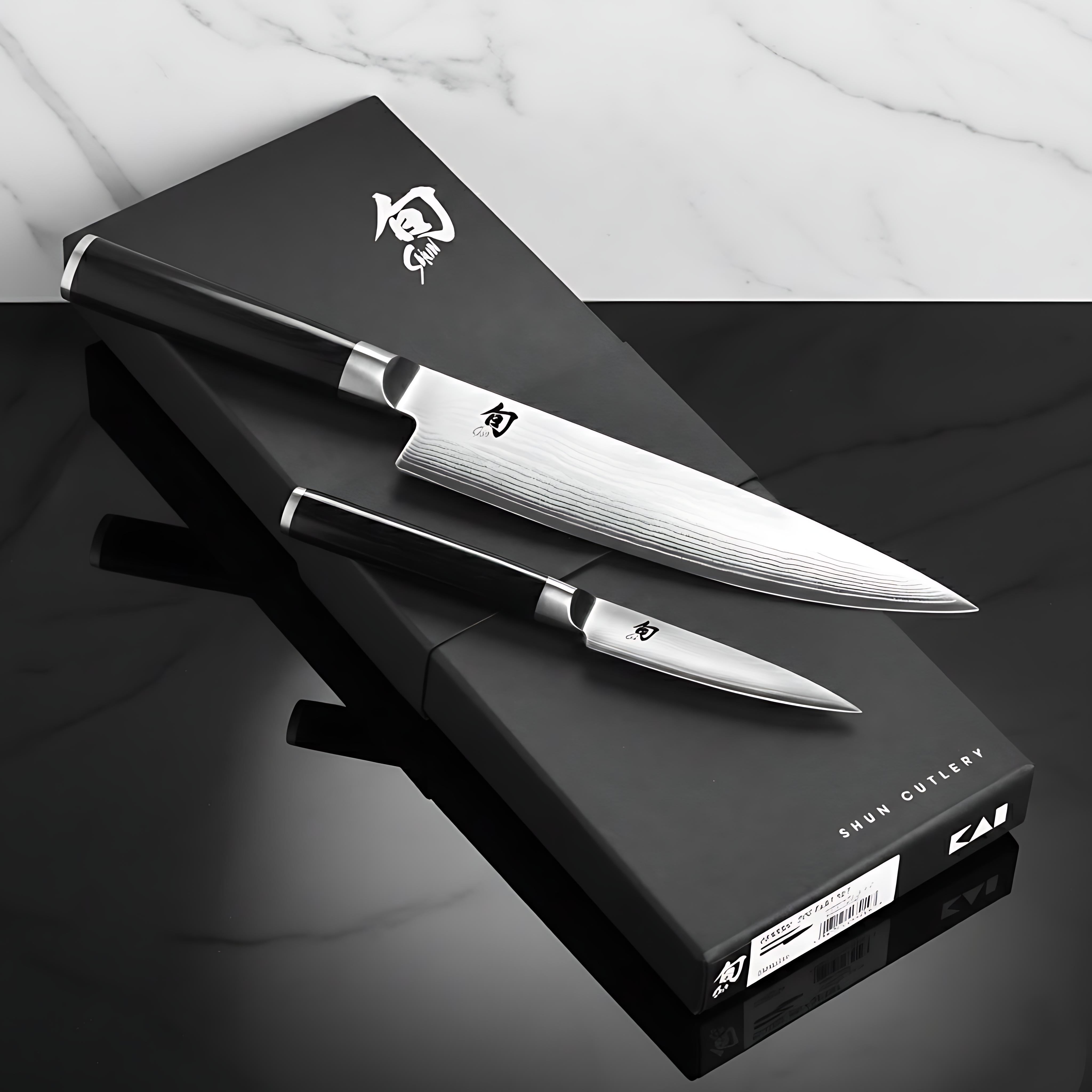 This two-piece Shun Classic Knife Set is an ideal start for any chef or home-cook looking to start their knife collection. This set contains the two most popular all-rounders in the kitchen being a Chef's Knife 20cm and Utility Knife 15cm. Both knives come beautifully present in a gift box and razor-sharp ready at 22 degrees sharpness for precision cutting.