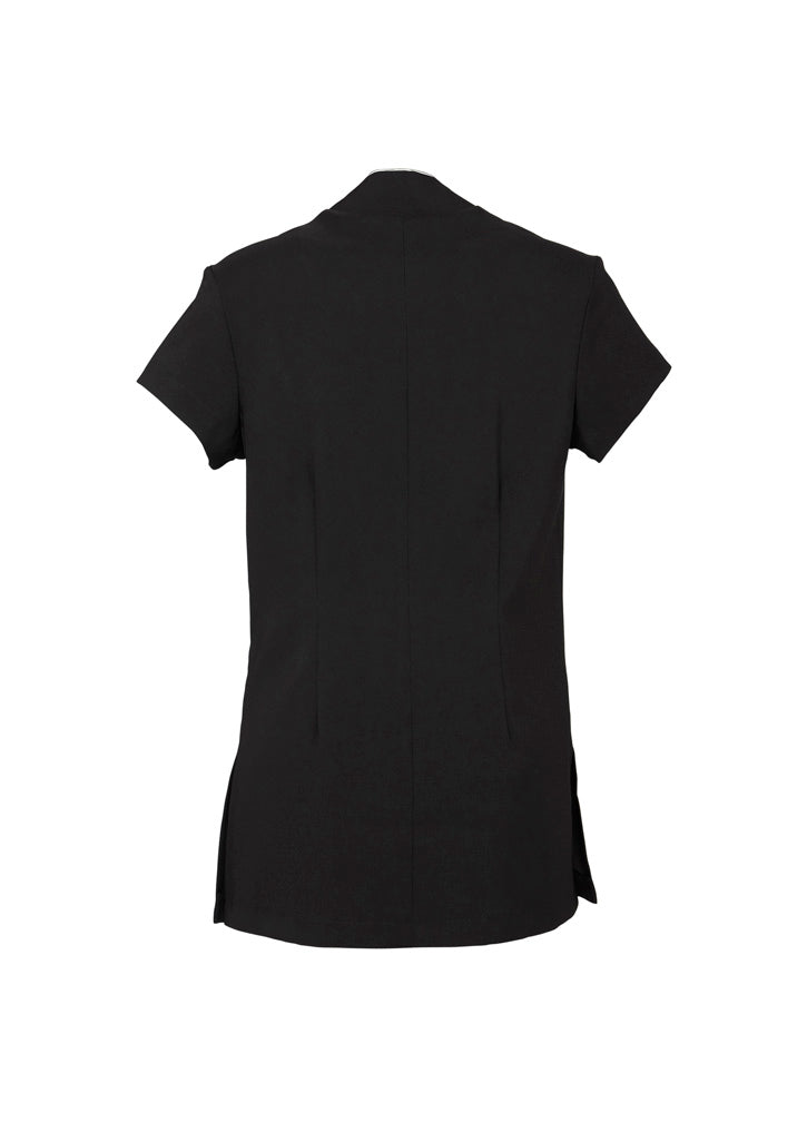 A classic button-through crossover design for the stylish beauty professional. Traditional Mandarin collar, simple lines and no pockets for a clean crisp look. Unique, satin back 2-way stretch fabric offers superior comfort and Dupont™ Teflon® stain release keeps the stains and spills at bay.