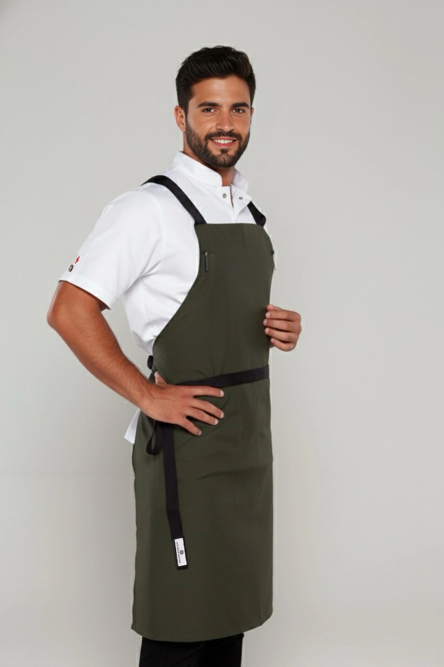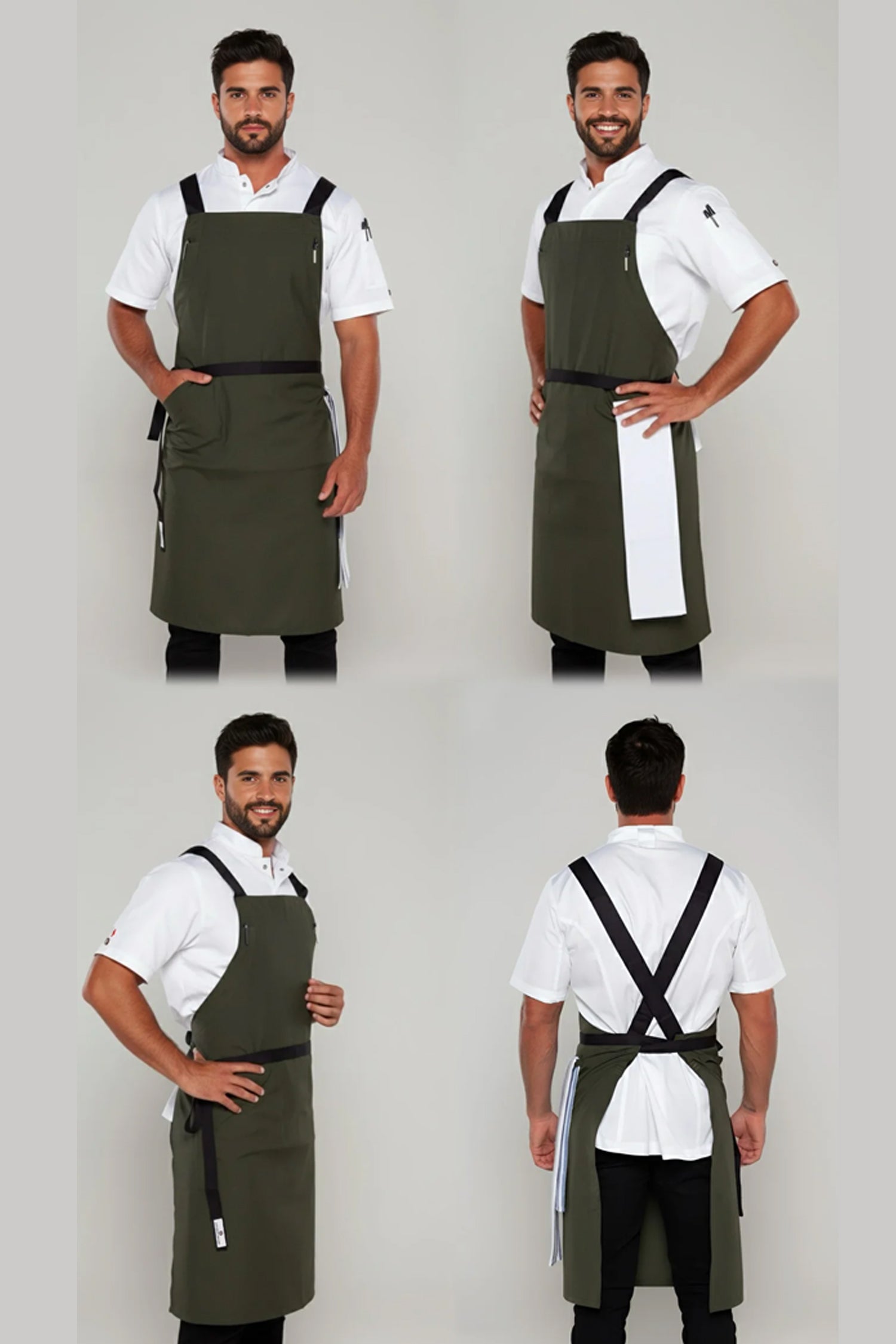 Byron Cross-Back Chef Apron is designed for hospitality professionals who need durability, comfort, and a clean modern look during long shifts.