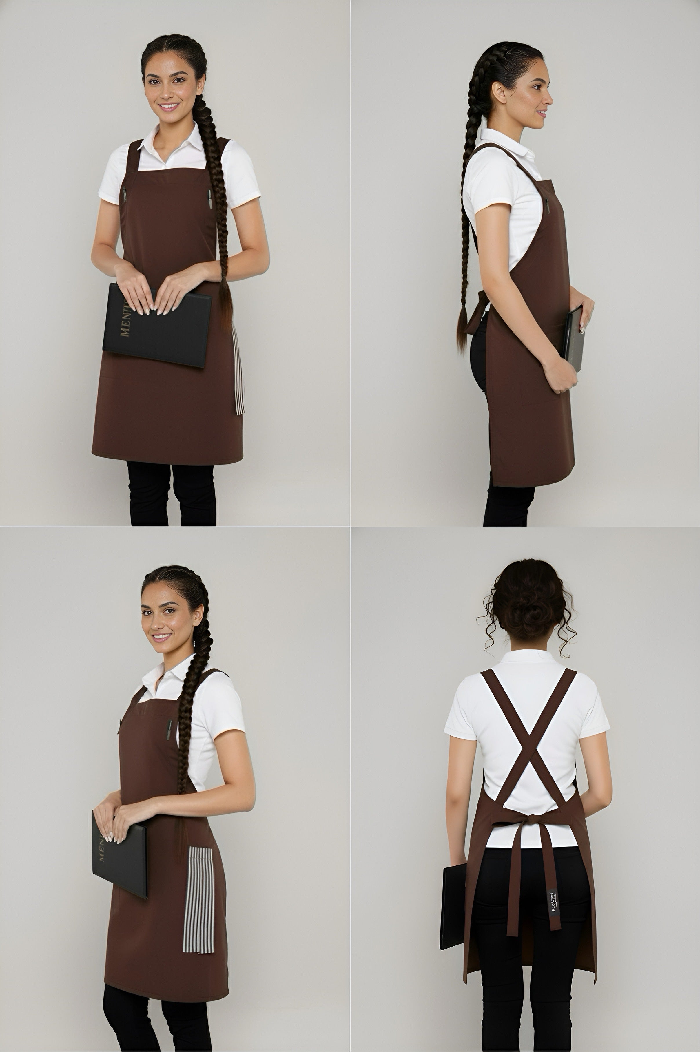 ["cross back aprons","cross over aprons","Front of house","front staff aprons","kitchen aprons","waiter aprons"]