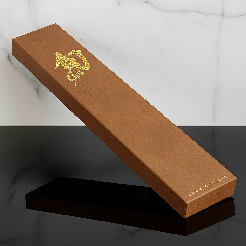 Shun cutlery is made from ultra-hard high-performance steels so Shun blades can be made thinner, lighter and sharper. The patented Composite Blade Technology allows Shun to combine the best characteristics of two steels in one blade, permanently joining different steels in one blade. The incredibly sharp 16° cutting angle of Shun knives makes slicing and dicing easy while preserving your blade for many years to come. The Hammered Tsuchime finish creates tiny pockets of air that act as hollow-ground cavities to reduce drag and quickly release food from the blade. Incredibly sharp edges and handcraft aesthetics set Shun knives apart from every other kitchen knife on the market today.