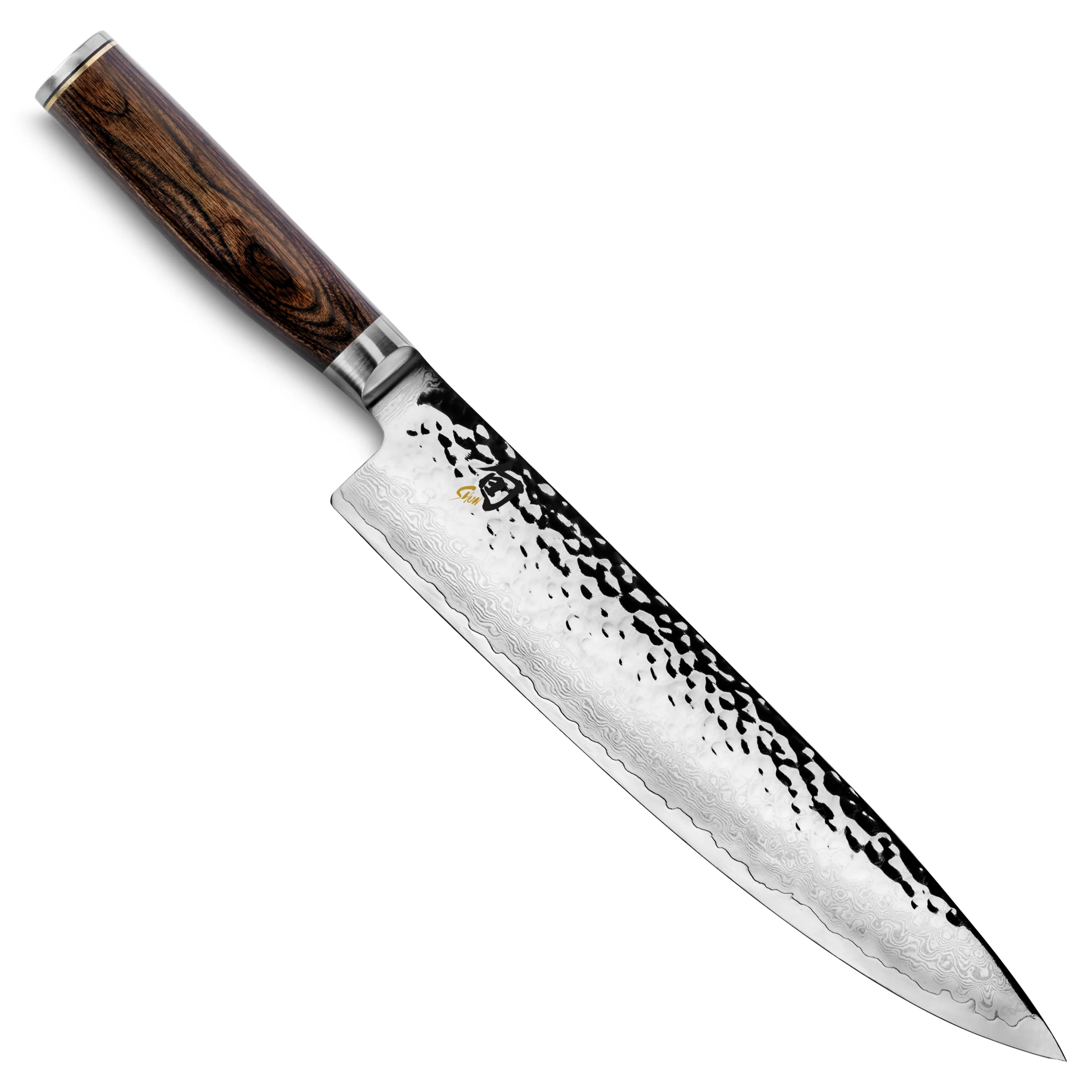 The Shun Premier 10" Chef's Knife is the only all-purpose knife you will need in your kitchen. This Chef's Knife is ideal for a wide variety of cutting tasks including slicing, dicing, and chopping just about anything in the kitchen. The 8" blade is perfect for preparing fruits, vegetables, proteins, and other foods. The wide blade keeps knuckles off the cutting board and is extra handy when transferring cut food from board to pan. With its curved belly, the Chef's knife can be gently "rocked" through fresh herbs or spices to produce a very fine mince. The PakkaWood Handle offers comfort and control and is made of genuine hardwood impregnated with resin, making it moisture resistant, strong, and durable.